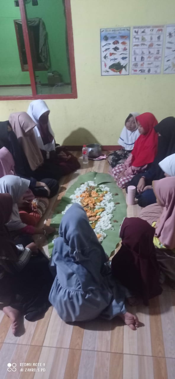 Para Santri Putra Dan Santri Putri Tengah Makan Malam Bersama Di Pondok Pesantren