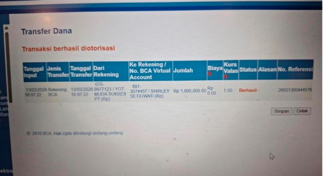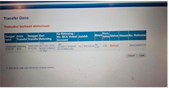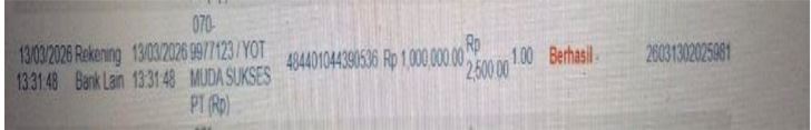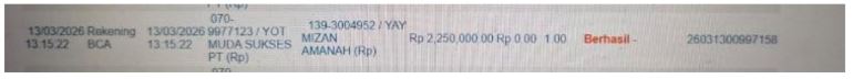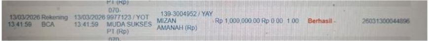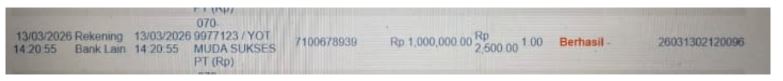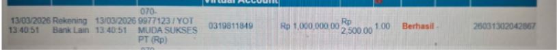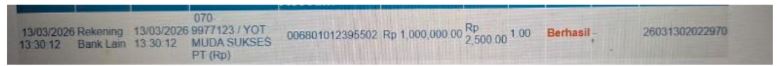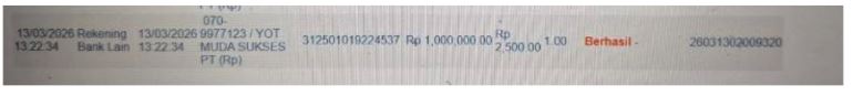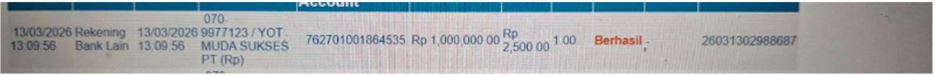 Ke rekening ****7171 a/n PT. YOT MUDA SUKSES