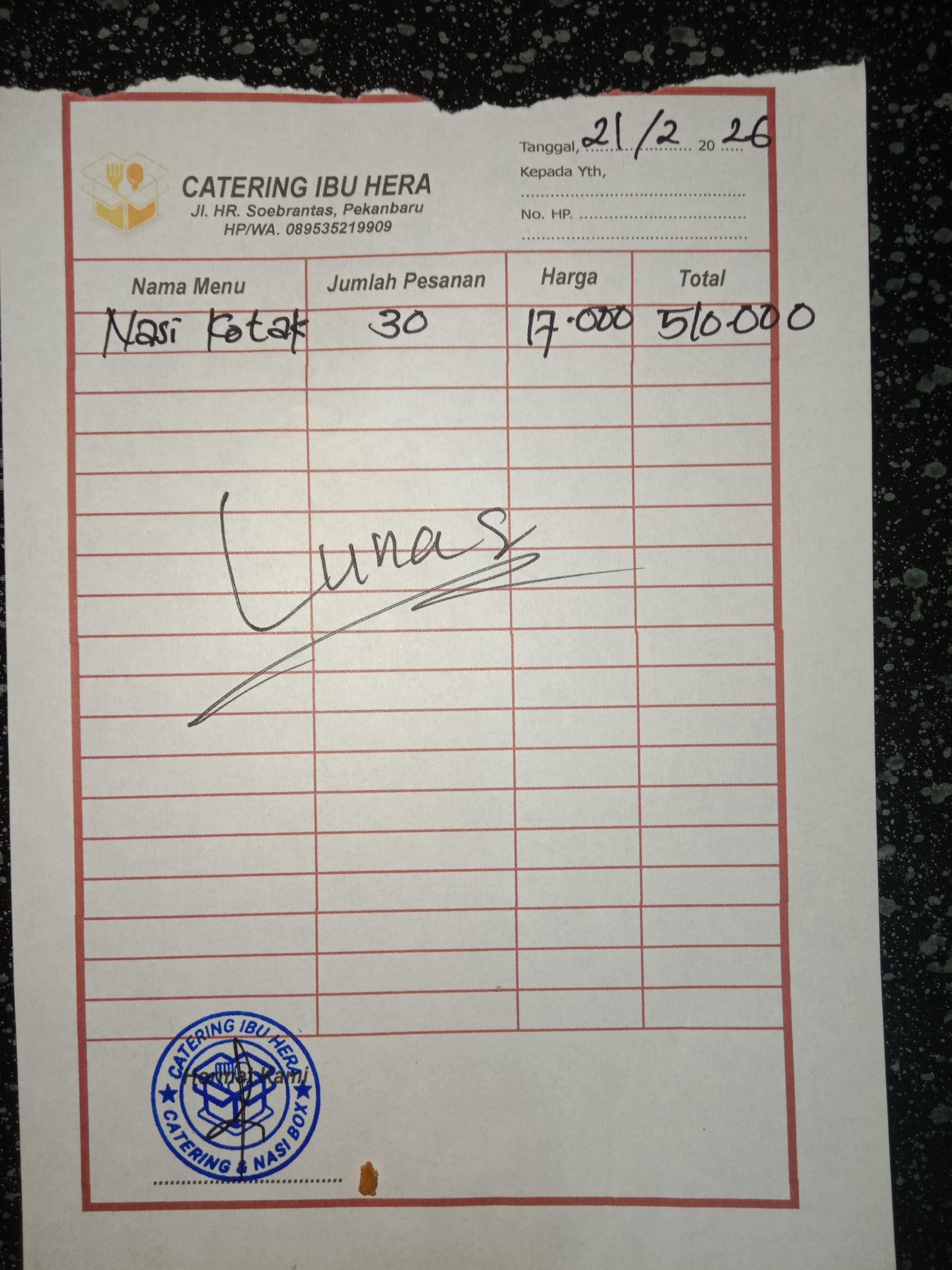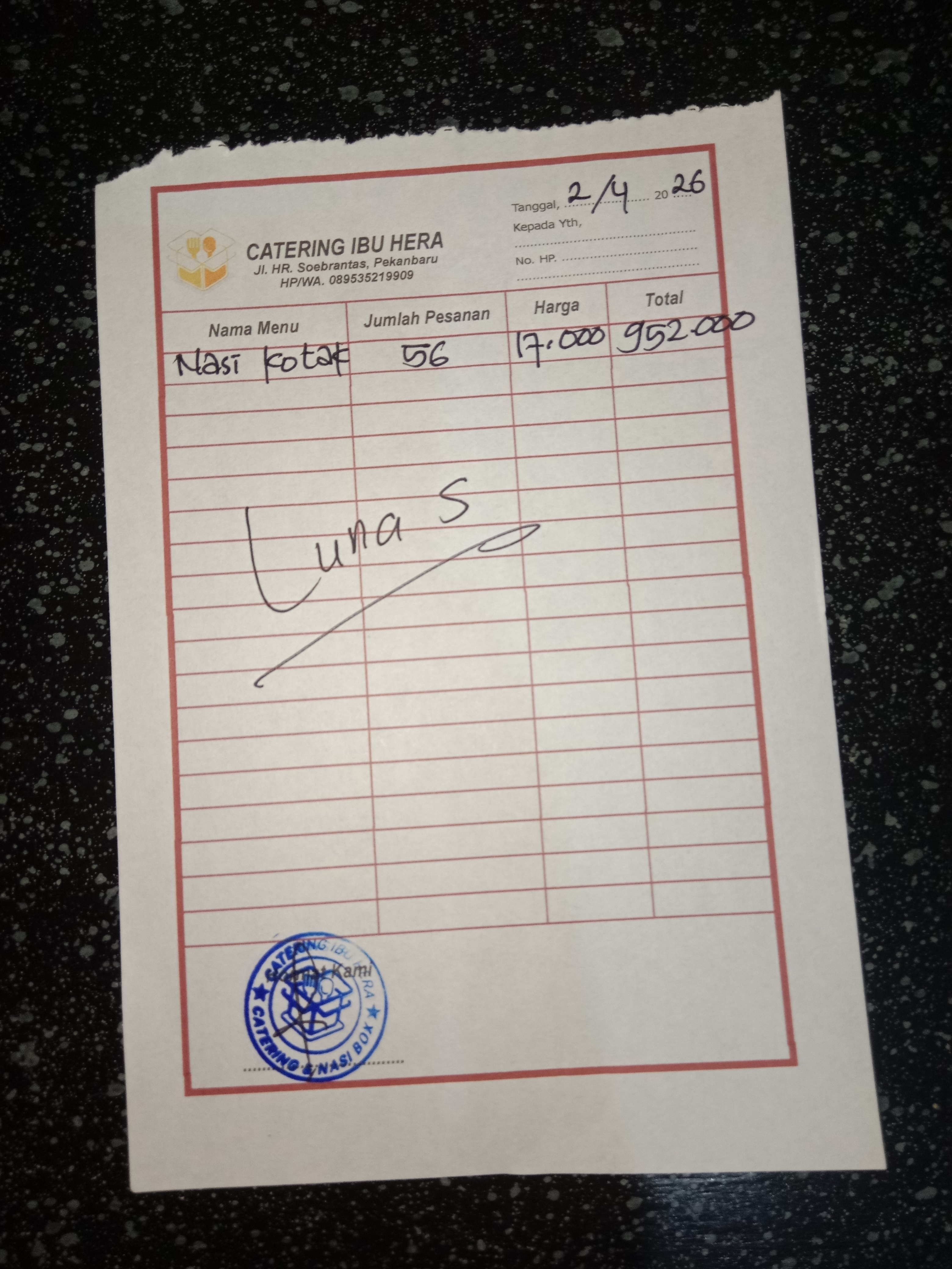 Dana akan digunakan untuk nasi kotak Rp17.000 x 6 kotak = Rp102.0002026-02-03 14:12:34