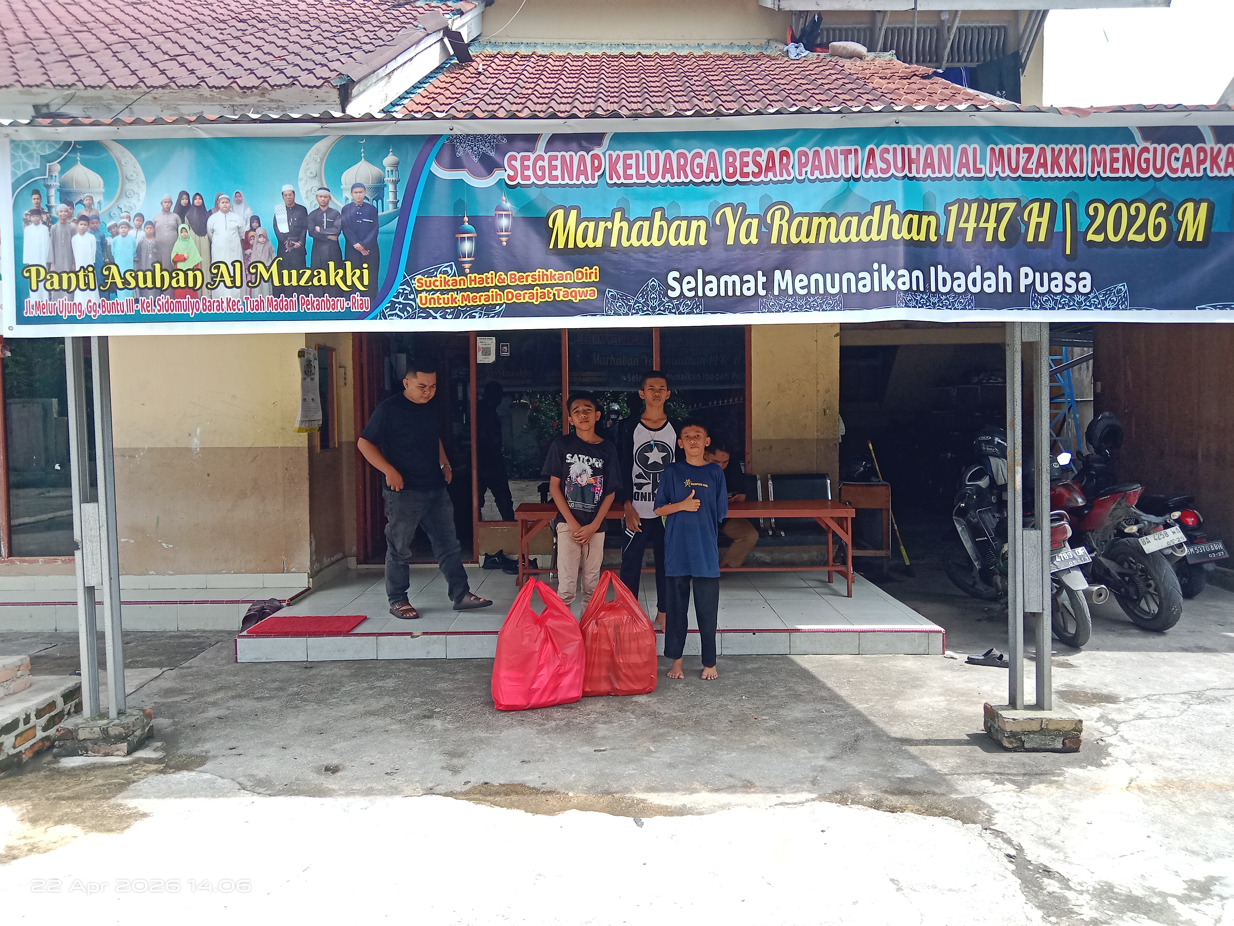 Dana bantuan dari #TemanBaik sudah disalurkan ke Panti Asuhan Al Muzakki di daerah Pekanbaru pada Senin, 15 April 2024, dengan pembagian sebanyak 28 nasi kotak.