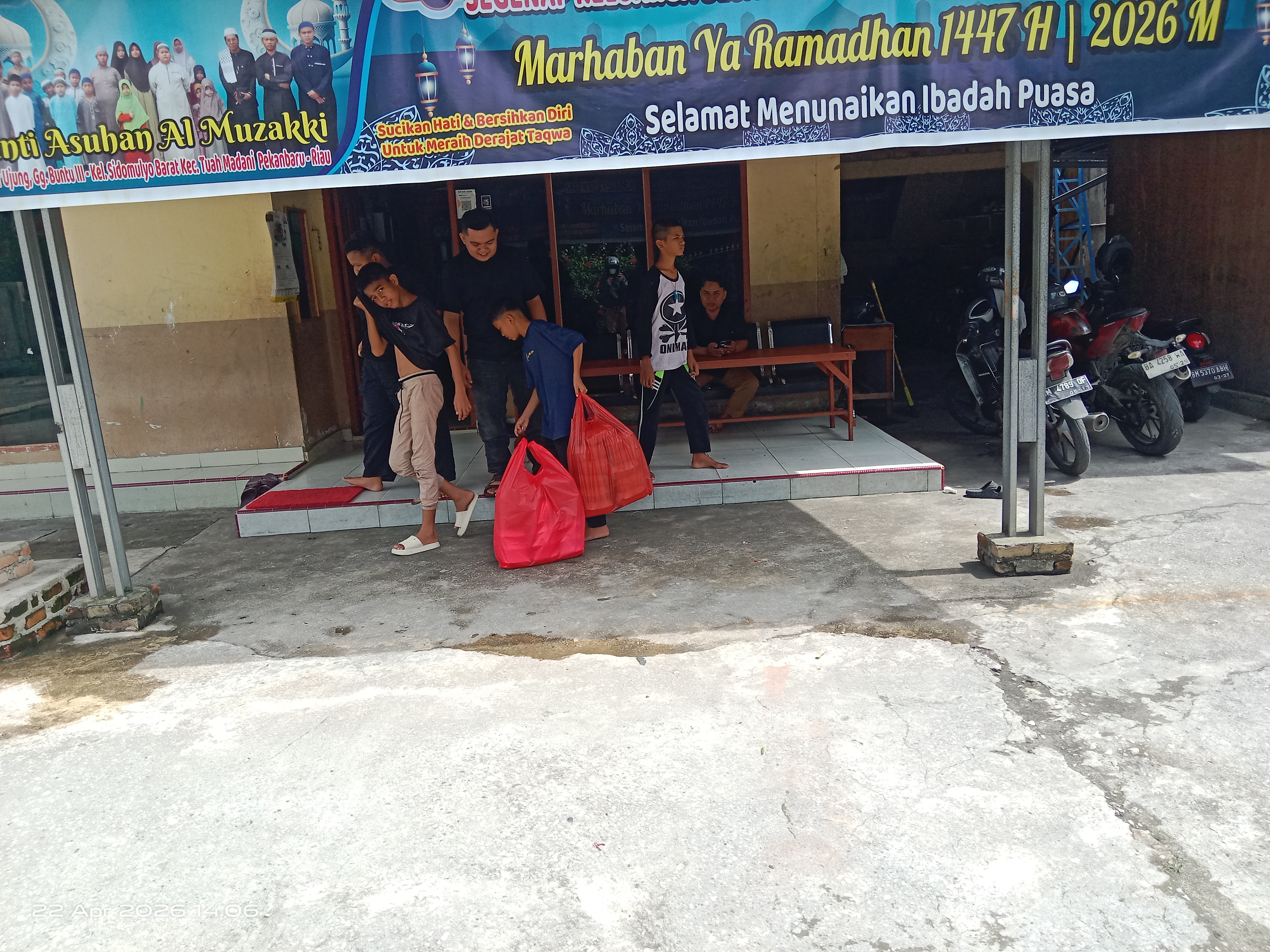 Alhamdulillah, kegiatan berbagi hidangan berbuka puasa telah terlaksana dengan lancar. Hidangan berbuka disalurkan kepada adik-adik di Panti Asuhan Al Muzakki sebagai wujud kepedulian dan kebersamaan kita di bulan Ramadan.