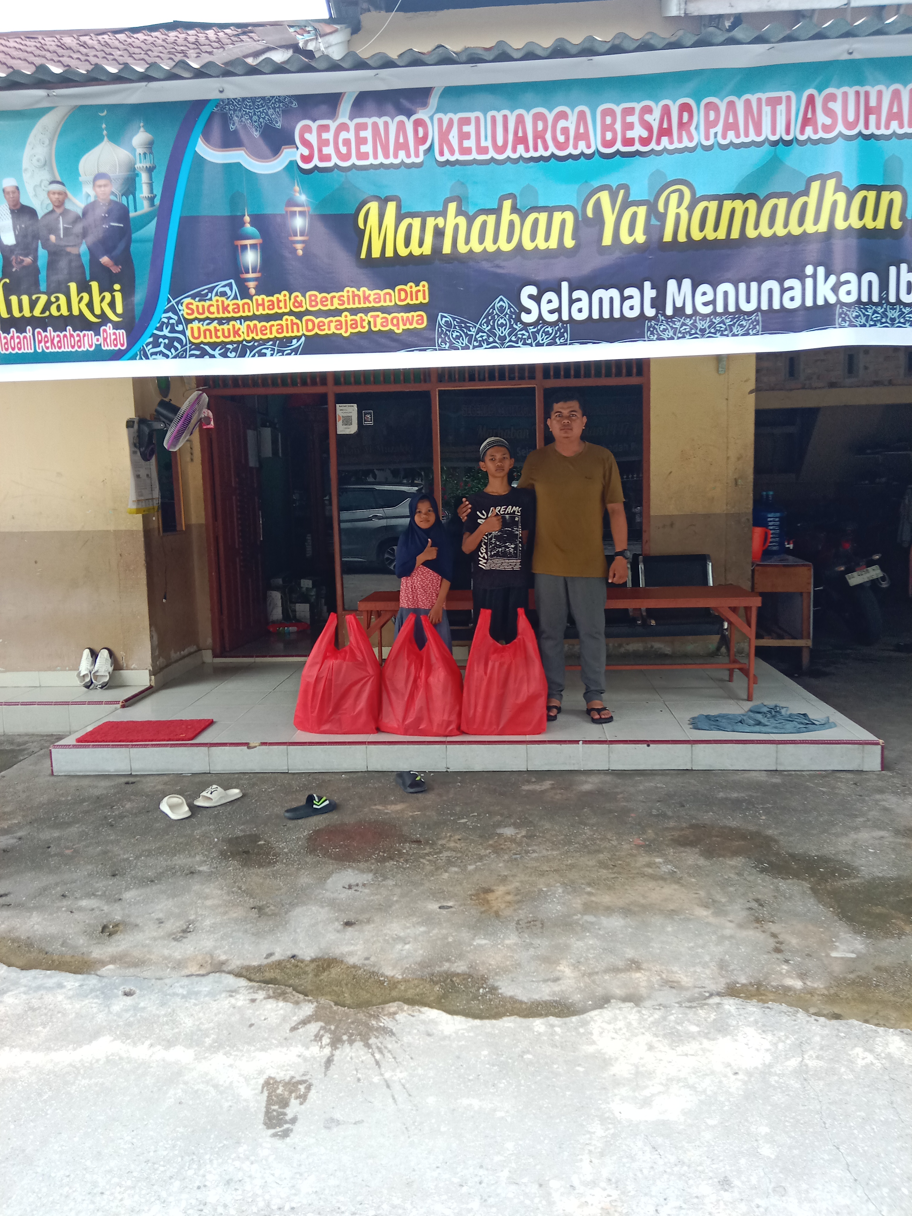 Dana bantuan dari #TemanBaik sudah disalurkan ke Panti Asuhan Al Muzakki di daerah Pekanbaru pada Minggu, 17 Maret 2024, dengan pembagian sebanyak 18 nasi kotak.