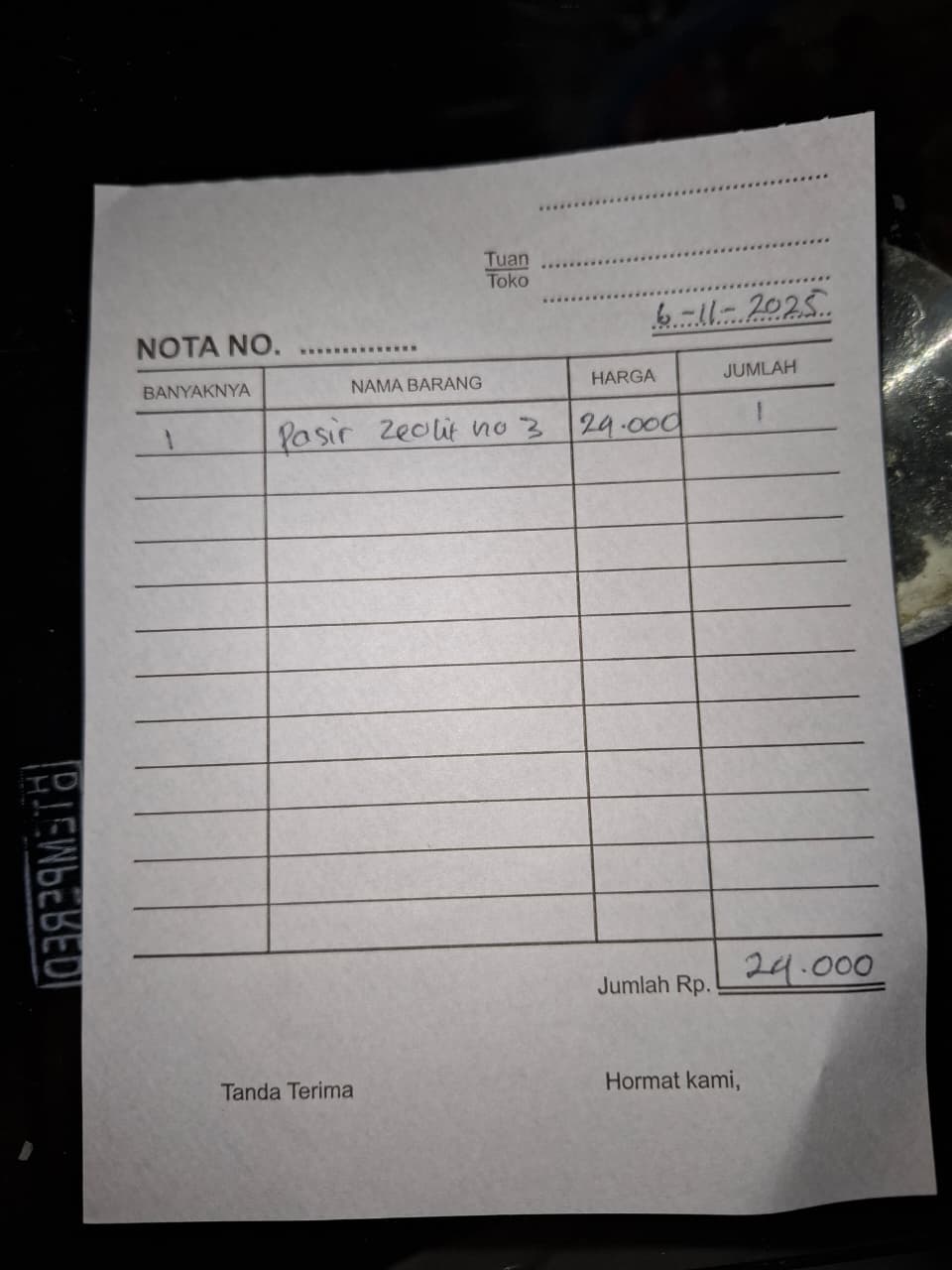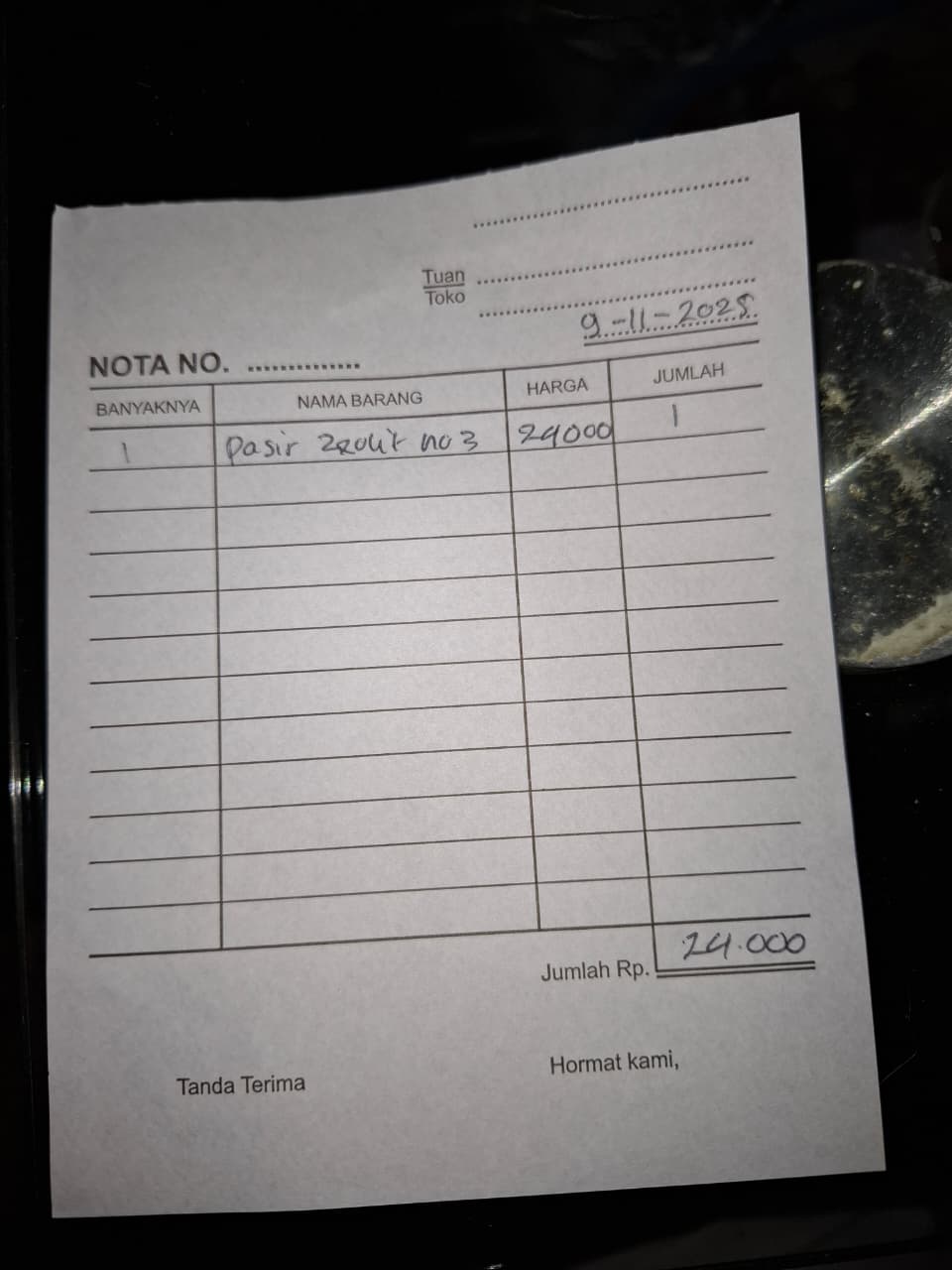 Dana digunakan untuk pembelian pasir Zeloit 1kg2025-08-19 11:25:44