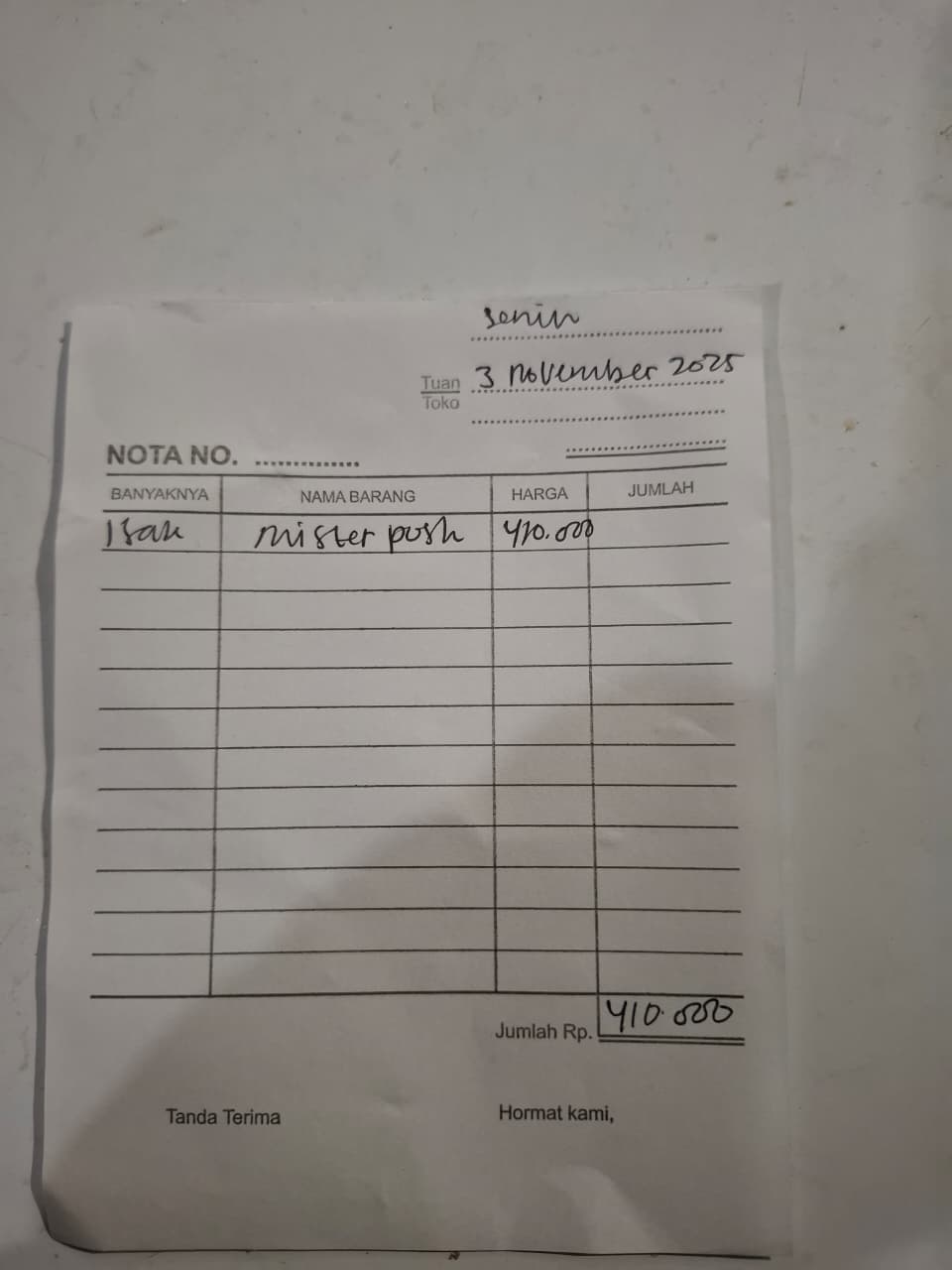 Dana digunakan untuk 1. Dryfood 1 sak Rp410.000 2. Obat cacing kucing Rp30.000 3. Pasir kucing Rp35.000 x 6 karung = Rp210.000 4. Obat tetes mata kucing 3 botol Rp45.000 5. Wetfood Rp19.000 x 6 kaleng= Rp114.0002025-11-06 10:26:22