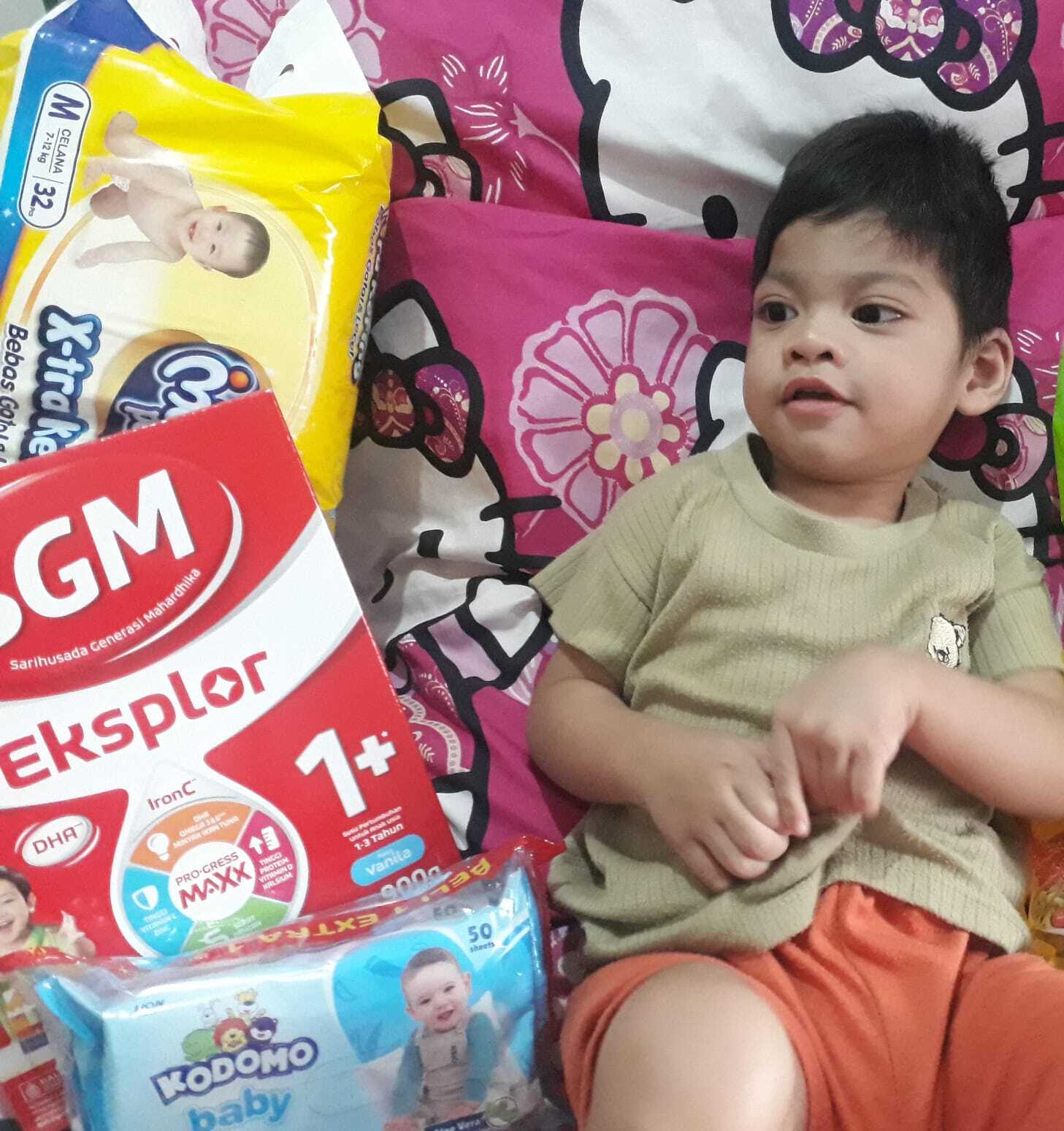Dana bantuan dari #TemanBaik digunakan untuk keperluan transportasi kontrol pulang-pergi ke Rumah Sakit Soetomo, pembelian pampers dan susu.