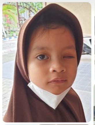 Umurnya masih 9 tahun, kami tak pernah menyangka Afiqa harus menerima kenyataan pahit bahwa ia menderita kanker bola mata yang menyebabkan ia kehilangan sebelah bola matanya.
