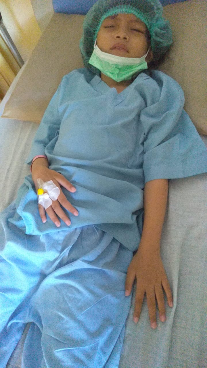 Sebagai orang tua rasanya terpukul sekali, apalagi Afiqa harus kehilangan matanya. Kondisi saat ini Afiqa sudah menjalani operasi di RSCM. Namun setelah diperiksa patologi, hasilnya menyatakan ia harus menjalani kemoterapi sampai siklus ke 4.