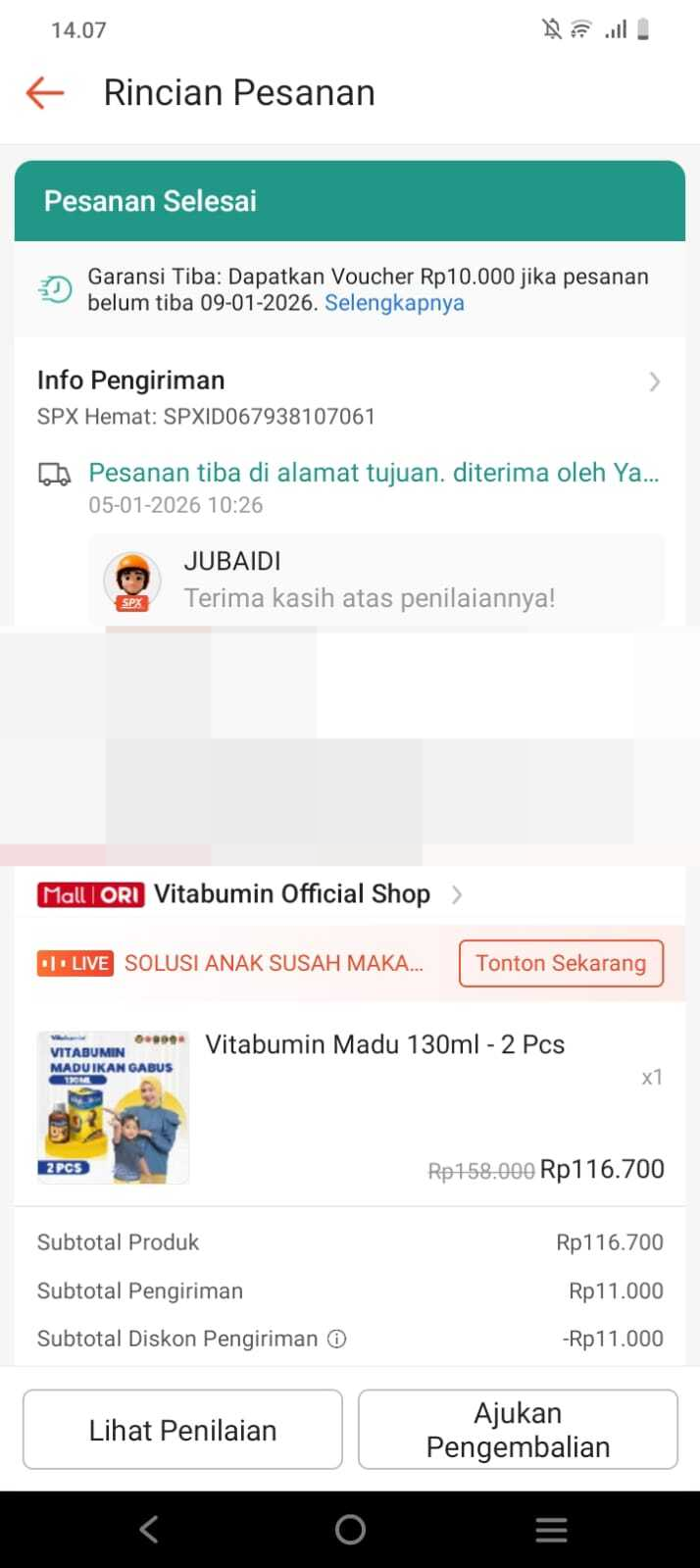 Dana digunakan untuk 1. Obat Hecosan 2 botol Rp76.000 2. Transportasi bensin kontrol Rp45.000 3. Greenfields UHT full cream 2pcs Rp60.000 4. Vitabumin Rp65.0002026-01-09 09:57:09