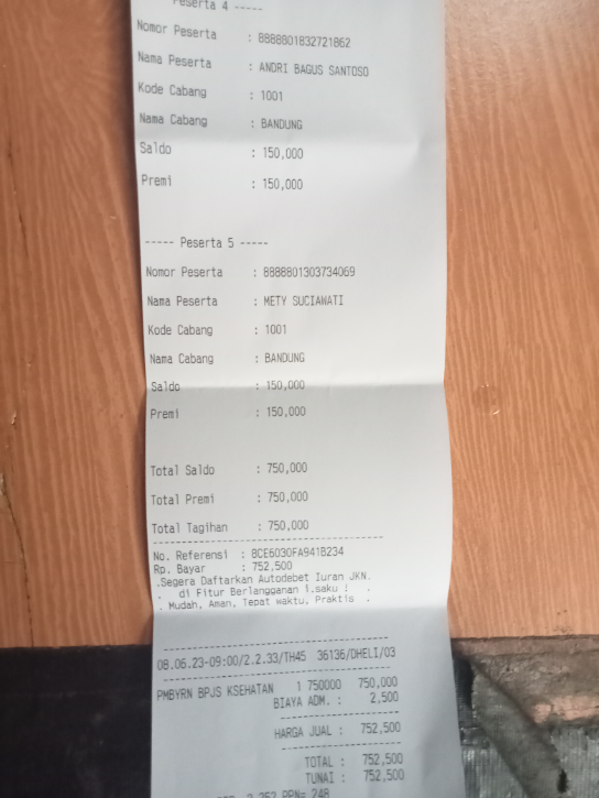 Dana digunakan untuk tambahan pembayaran iuran BPJS bulan Juni 2023.