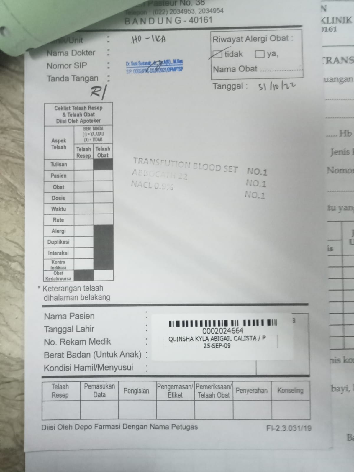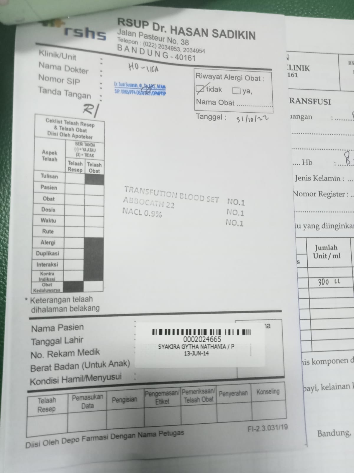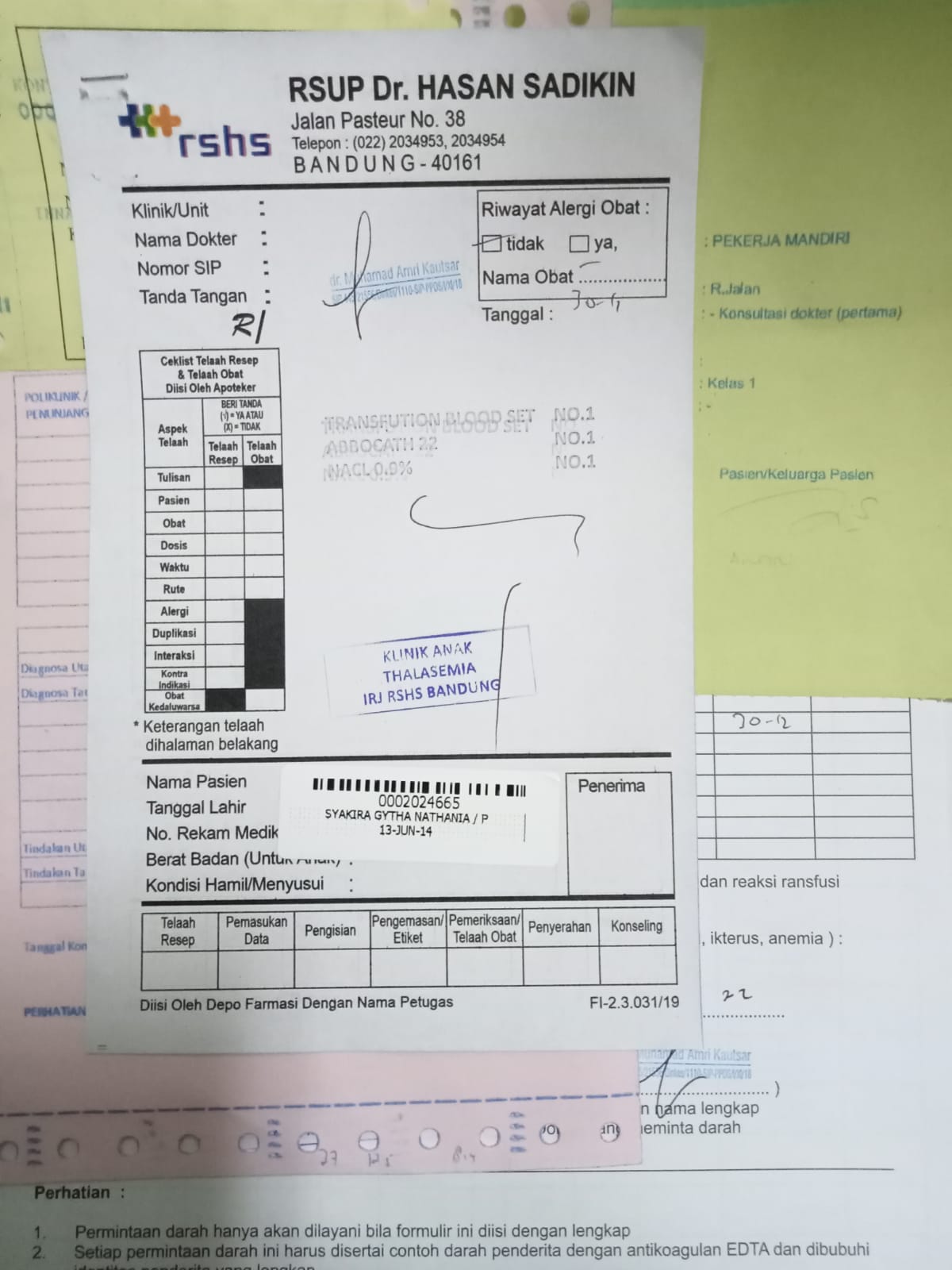 • Anak Saya Memerlukan Obat Penurun Zat Besi Yang Belum Terbeli Karena Tak Ada Biaya
