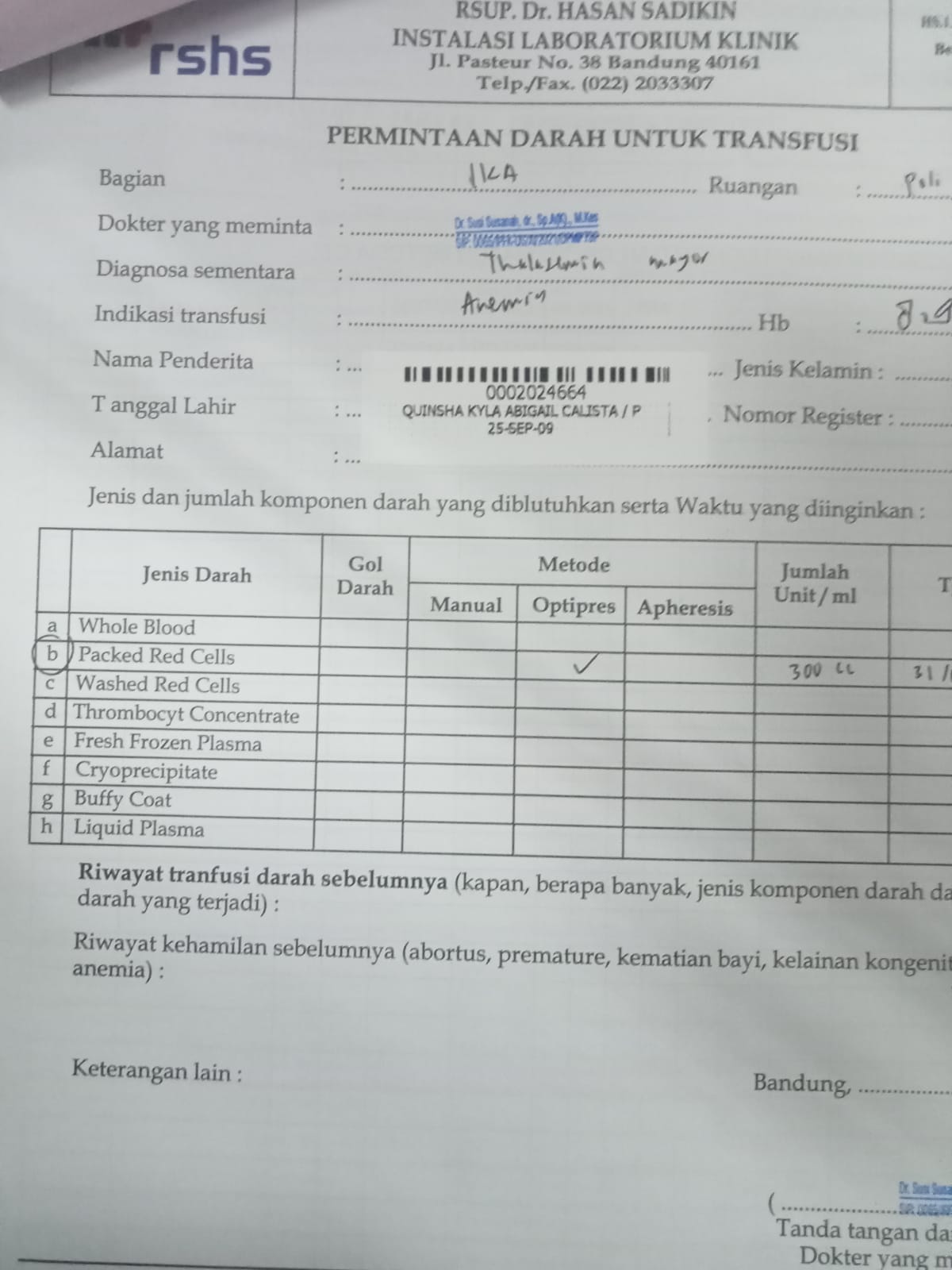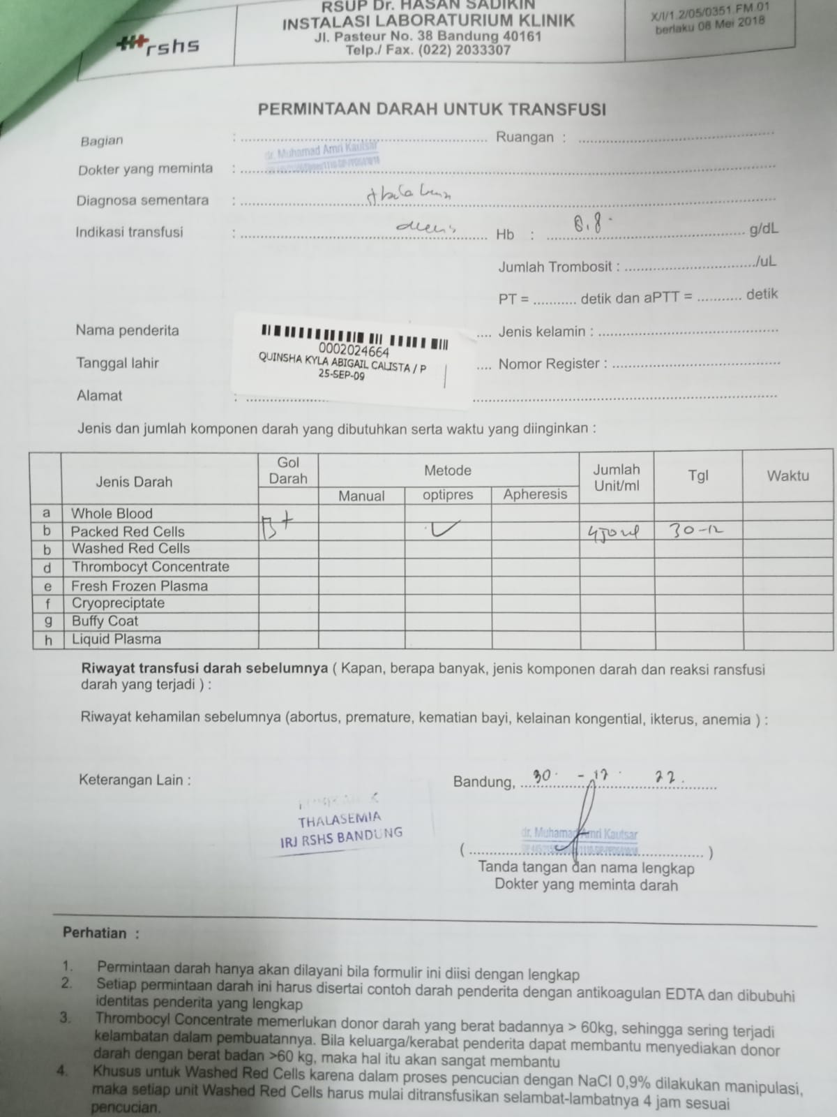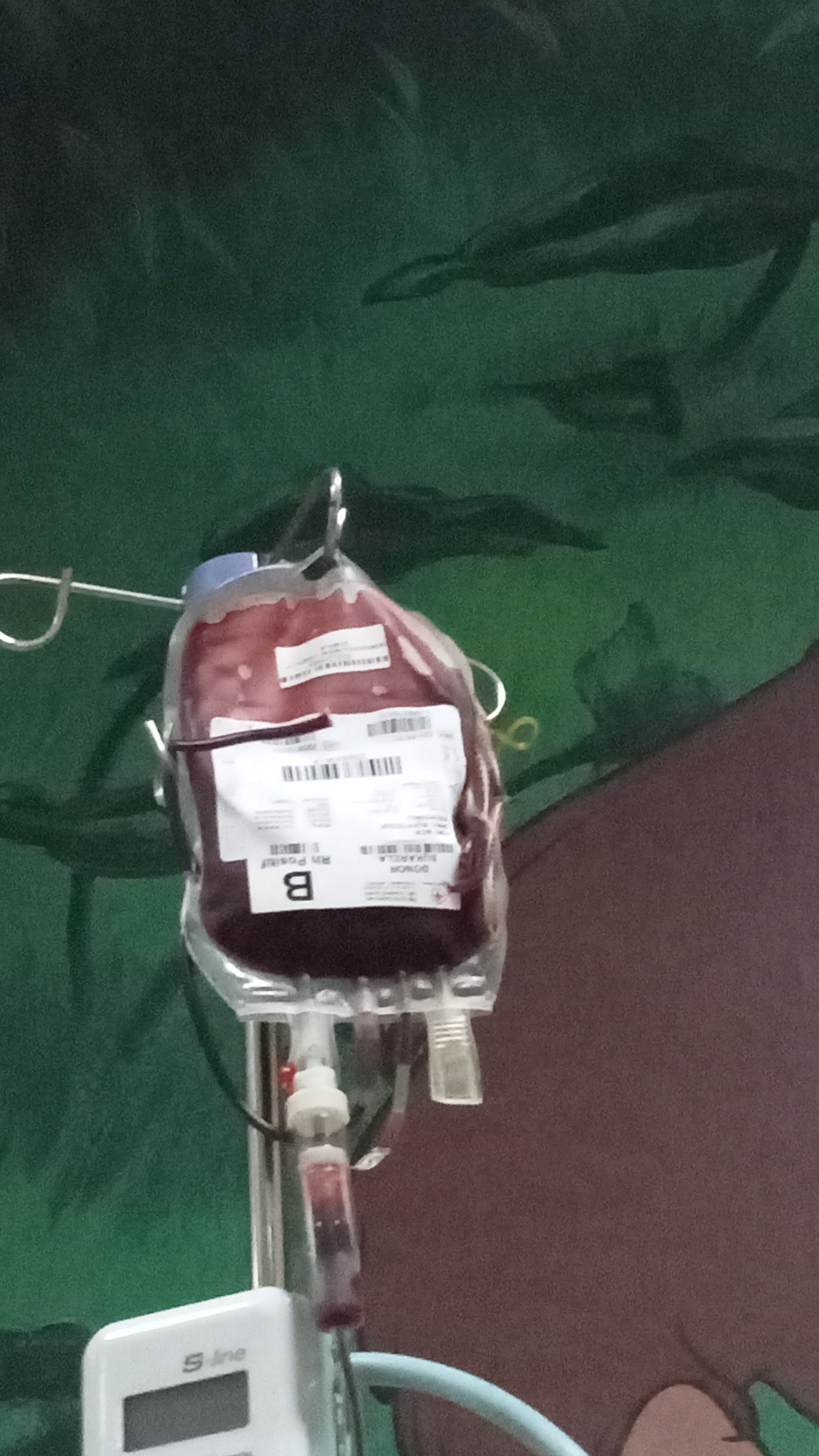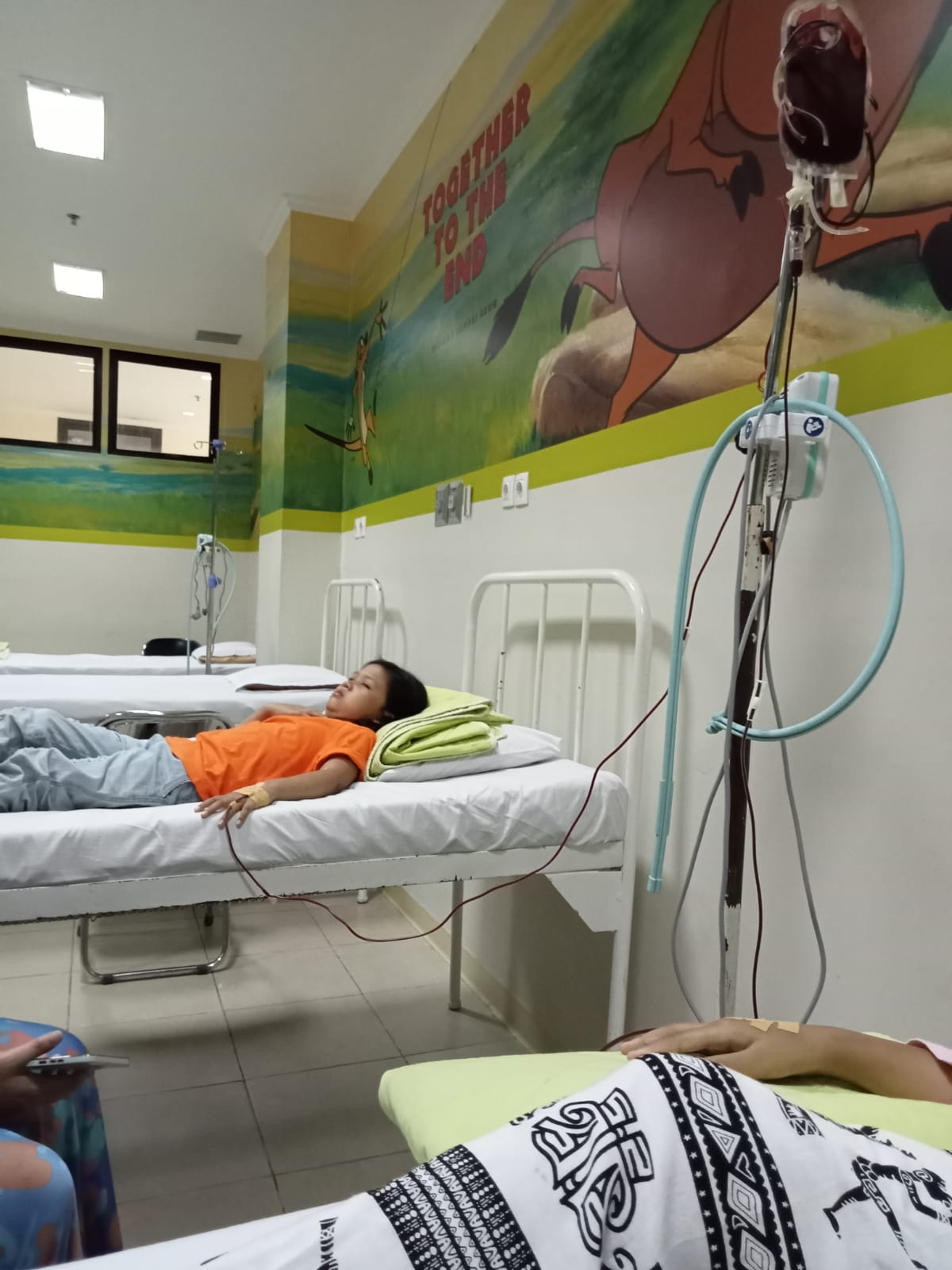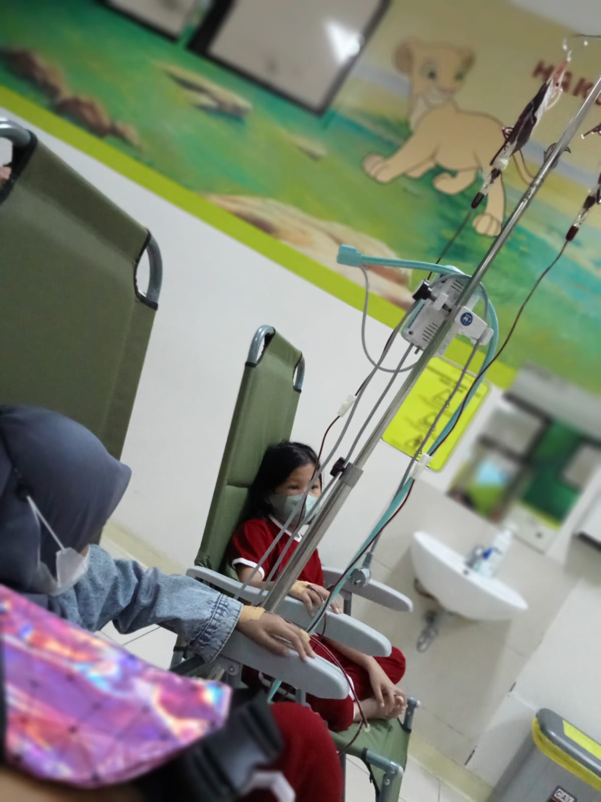 Alhamdulillah dua Minggu ke belakang ia sudah menjalani transfusi, dijadwalkan Minggu depan untuk transfusi rutin dan pemeriksaan laboratorium.