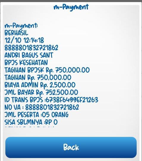 • Dana Digunakan Untuk Membayar Bpjs Bulan Oktober
