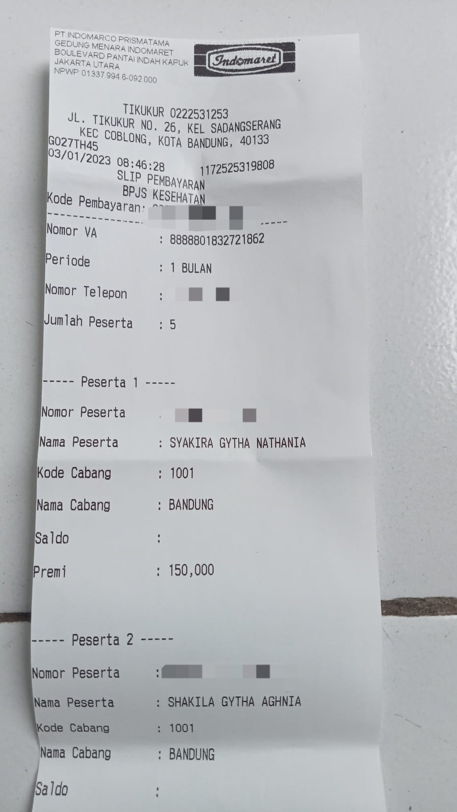 Dana bantuan dari TemanBaik yang sudah terkumpul, sudah aku gunakan dengan baik untuk pembayaran BPJS bulan Maret.