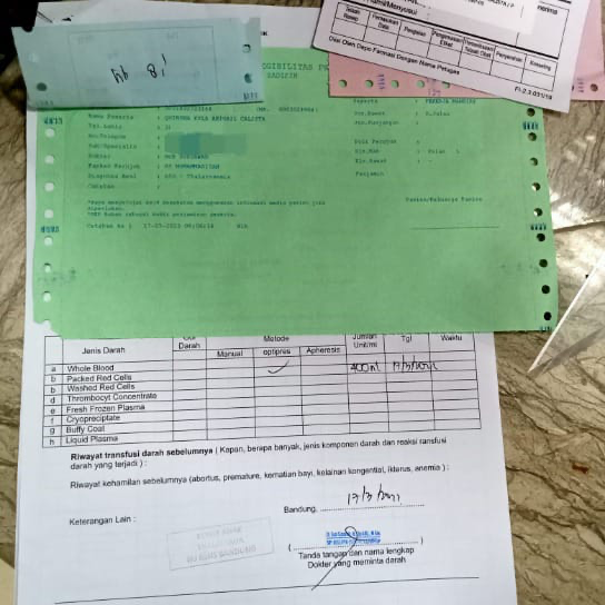 Saya mau mengabarkan bahwa bantuan dari TemanBaik sudah saya gunakan untuk kebutuhan medis kedua anak saya.  Kedua anak saya harus menjalani transfusi darah pada Minggu depan.  Transfusi harus dilakukan karena semakin HBnya rendah maka akan memengaruhi organ jantung untuk memompa darah akan terasa berat.