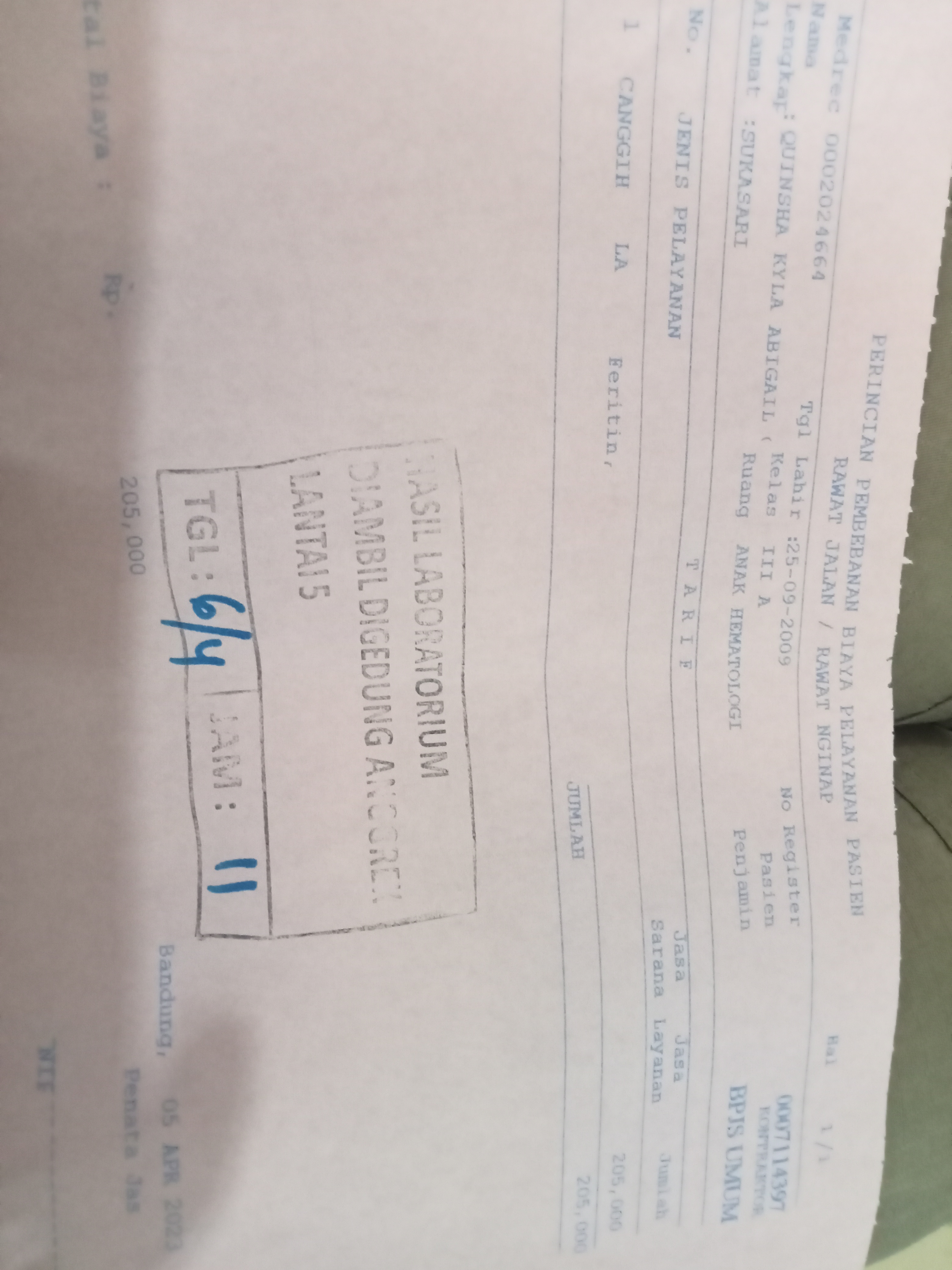 Dana digunakan untuk: 1. Untuk biaya laboratorium pemeriksaan feritin.
