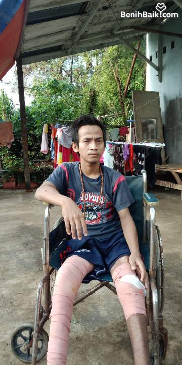 Aku masih punya istri yang sedang hamil, dan 2 anak yang harus dinafkahi. Aku ingin bisa berobat dan terapi lagi, supaya kakiku tidak terlalu sakit kalau berjalan menggunakan tongkat. Pun nantinya, bisa berjualan di rumah.