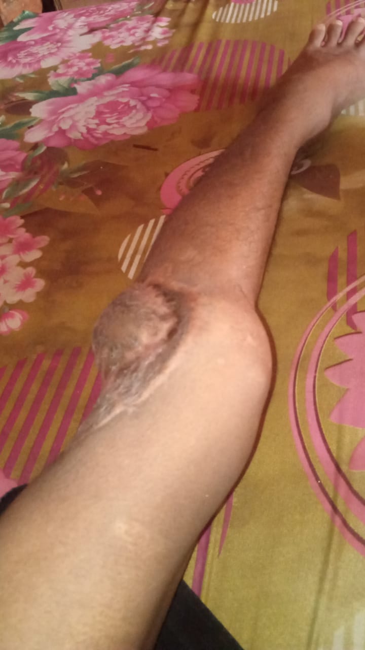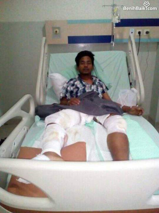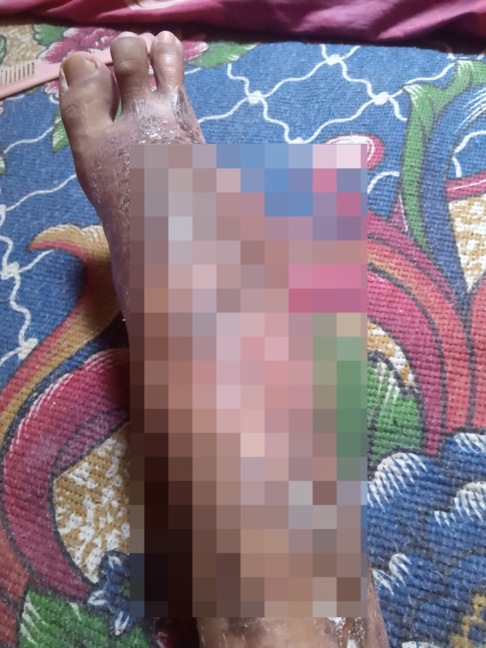 2019 lalu, aku tersengat listrik tegangan tinggi (20 KV) di tempat kerja, sampai kedua kakiku tidak bisa normal lagi. Aku sempat dirujuk ke beberapa rumah sakit karena keterbatasan alat medis. Perusahaan juga tidak mau bertanggung jawab, sampai memulangkanku di kondisi yang belum sembuh. Alhasil, kaki kananku membusuk karena telat dioperasi saat itu.