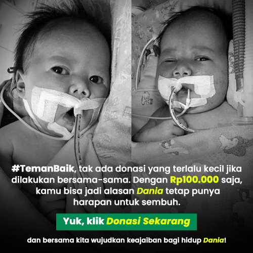 #TemanBaik, tak ada donasi yang terlalu kecil jika dilakukan bersama-sama. Dengan Rp100.000 saja, kita bisa jadi alasan Dania tetap punya harapan untuk sembuh. Yuk, klik Donasi Sekarang dan bersama kita wujudkan keajaiban bagi hidup Dania!