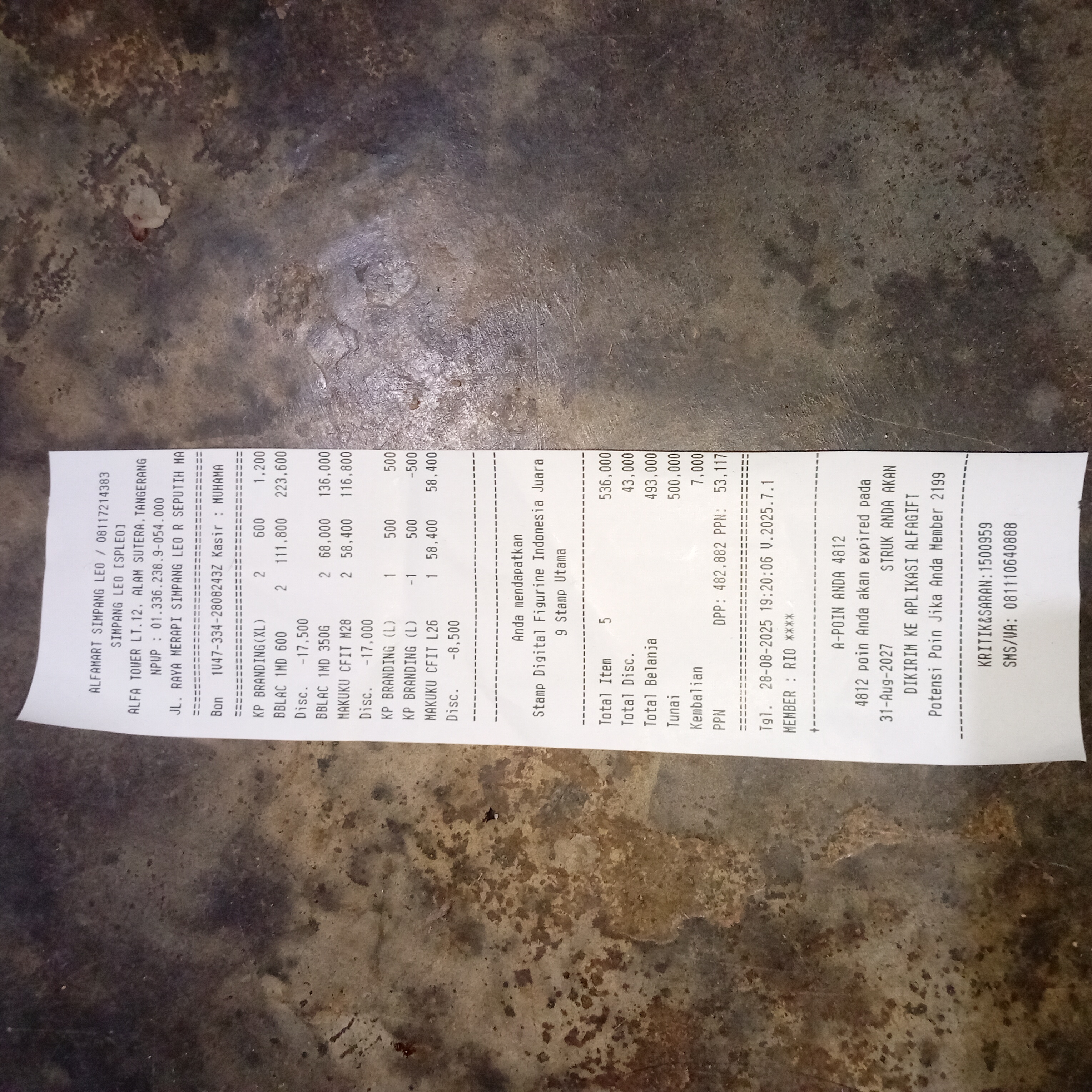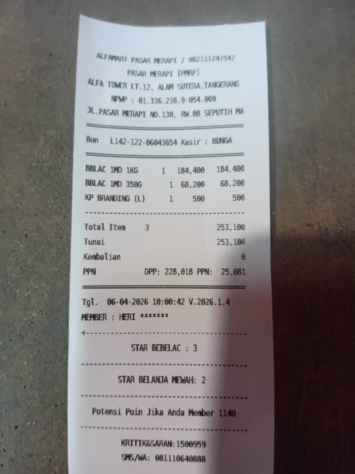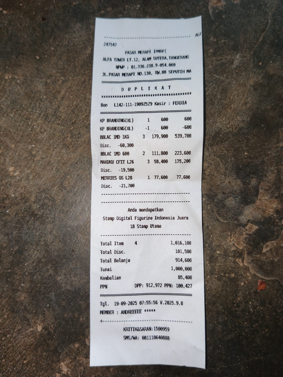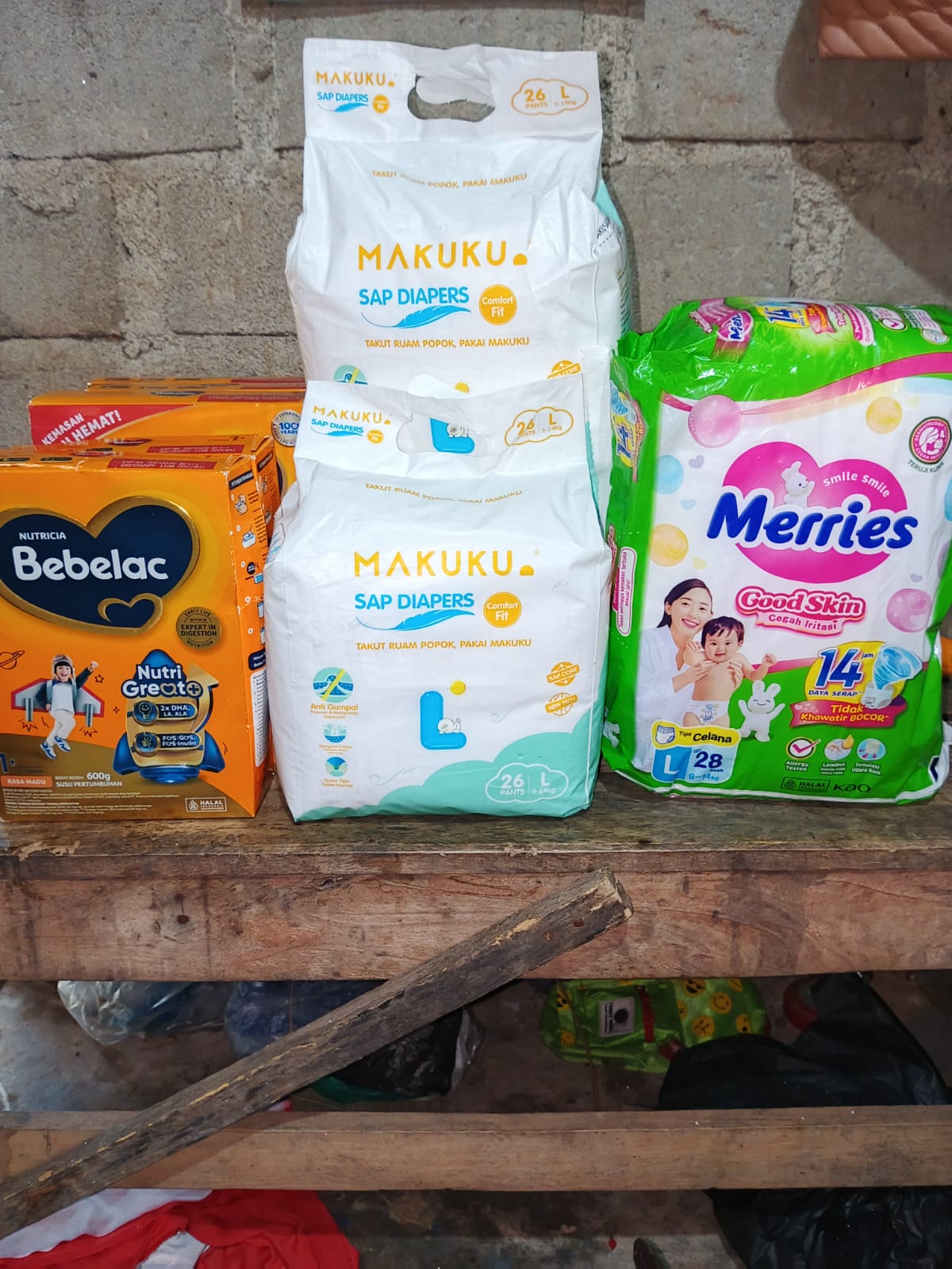 Dana digunakan untuk 1. Susu Bebelac Rp110.000 × 7dus= Rp770.000 2. Pampers makuku Rp.50.000× 3 ball= Rp150.0002025-09-17 09:49:39