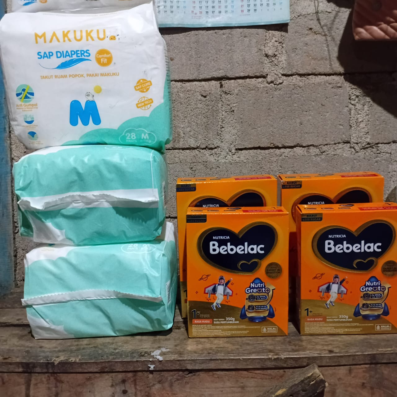 Dana digunakan untuk 1. Susu bebelac gold Rp110.000×3 dus= Rp330.000. 2. Pampers makuku Rp50.000 ×3 bal= Rp150.000 3. Transportasi sewa mobil kontrol ke rs harapan bunda lamteng Rp150,0002025-08-28 09:29:16