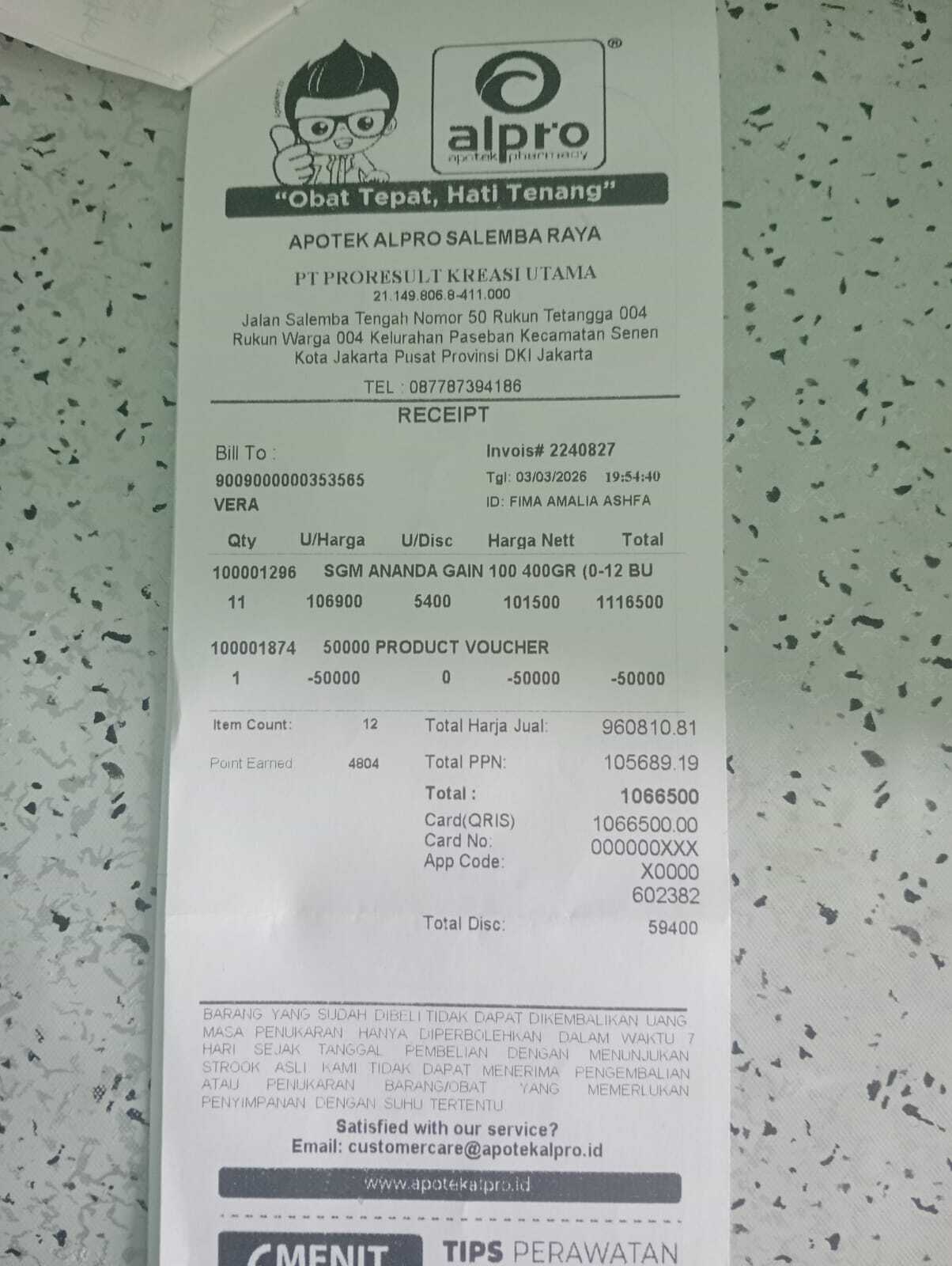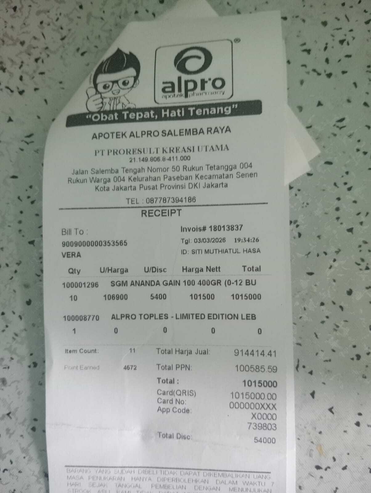 Dana digunakan untuk Reimburse Susu SGM 2 dus2026-01-19 15:18:25