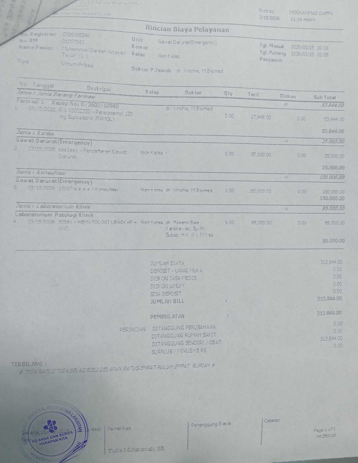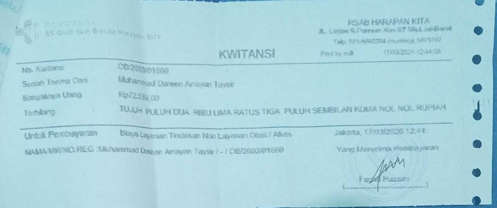 Dana digunakan untuk 1. Reimburse Susu Rp65.200 2. Reimburse Transportasi RS Rp35.0002025-11-17 09:12:22