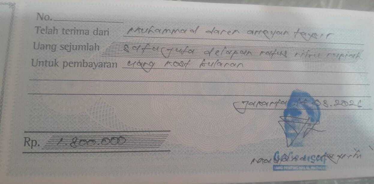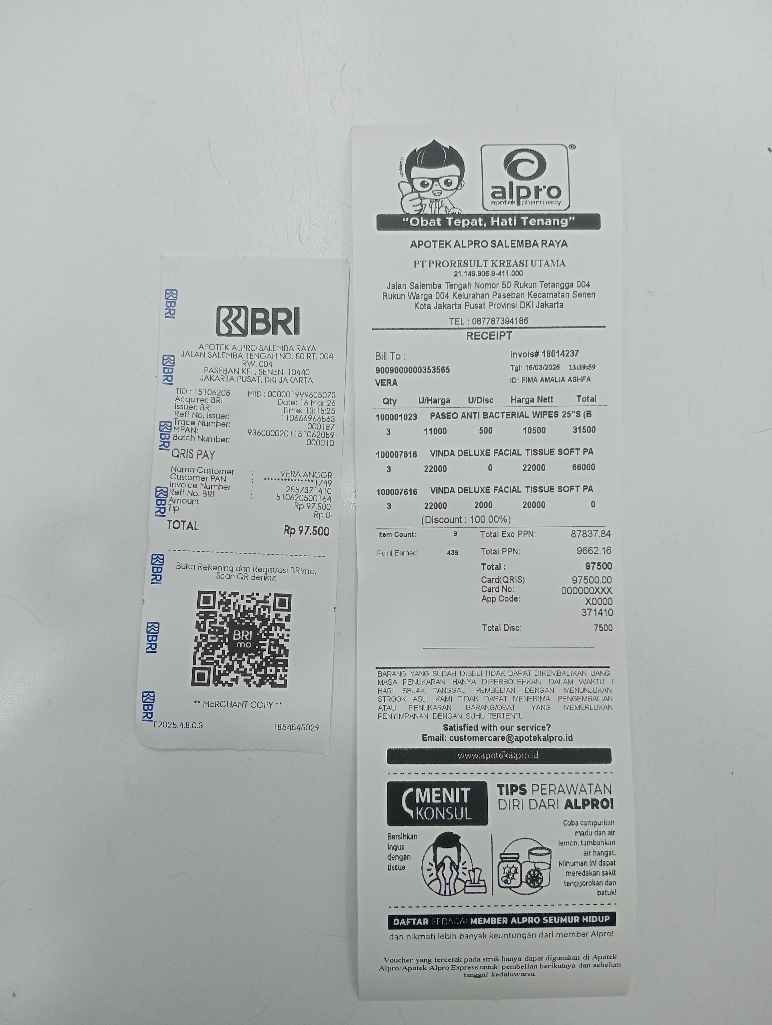 Dana digunakan untuk 1. Pembayaran kost 1 bulan Rp1.500.000 2. Reimburse Rp Grab Rp44.000 3. Reimburse susu SGM Rp101.500 x 10 dus = Rp1.015.000 4. Tisue basah Rp40.000 5. Tisue kering Rp60.0002026-03-16 15:40:40