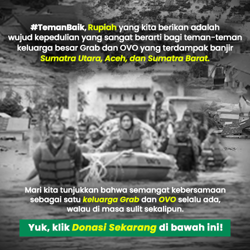 Mari kita tunjukkan bahwa semangat kebersamaan sebagai satu keluarga Grab dan OVO selalu ada, walau di masa sulit sekalipun. Terima kasih atas perhatian, solidaritas dan dukungan tulus rekan Grabbers sekalian! Yuk, klik Donasi Sekarang di bawah ini!