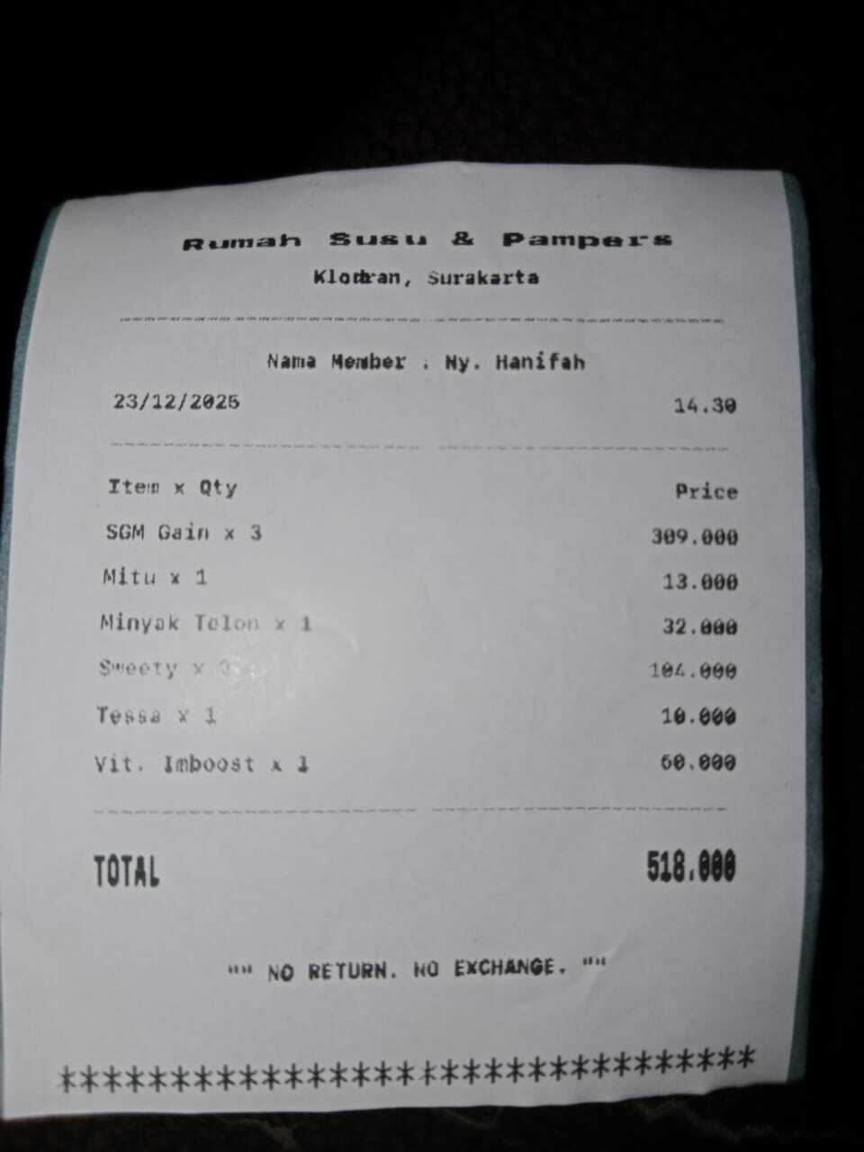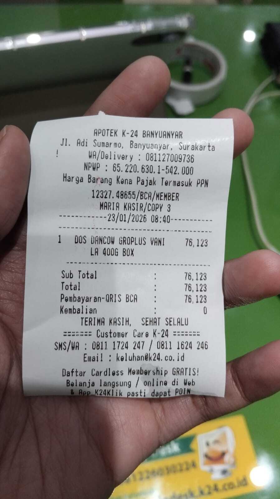 Dana digunakan untuk 1. Susu SGM gaint optigro 800gr Rp200.000x 2 = Rp400.000 2. Pampres marries uk M Rp100.000 x 2ball = Rp200.000 3. Transportasi grab/sewa mobil kontrol ke rs Moewardi PP Rp195.0002025-12-24 10:41:25