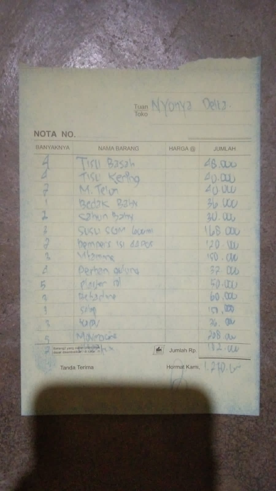 Mohon maaf TemanBaik, sisa nota kami gunakan untuk naik becak sehingga tidak ada nota yang bisa dilampirkan. Semoga bisa dimaklumi ya TemanBaik.
