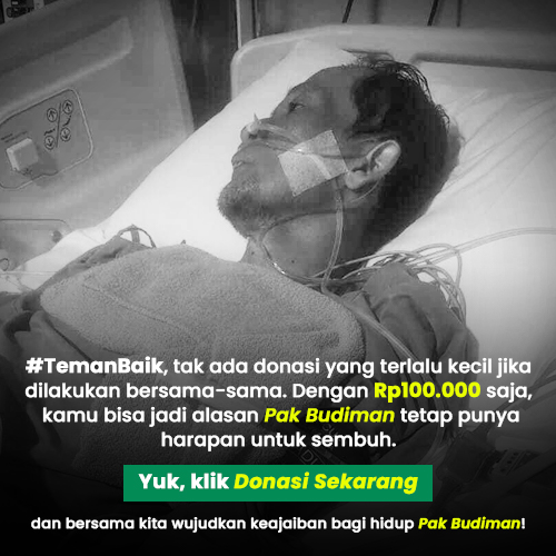 #TemanBaik, tak ada donasi yang terlalu kecil jika dilakukan bersama-sama. Dengan Rp100.000 saja, kita bisa jadi alasan Pak Budiman tetap punya harapan untuk sembuh. Yuk, klik Donasi Sekarang dan bersama kita wujudkan keajaiban bagi hidup Pak Budiman!