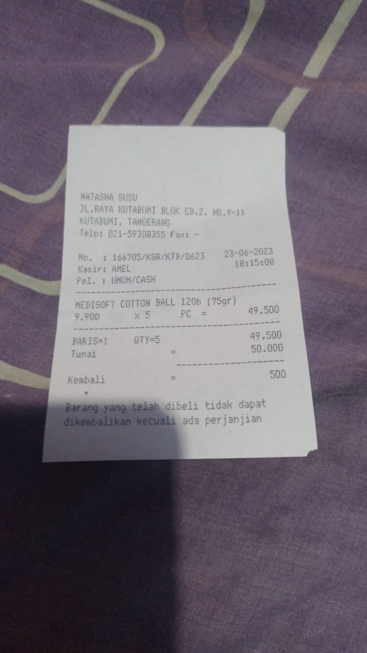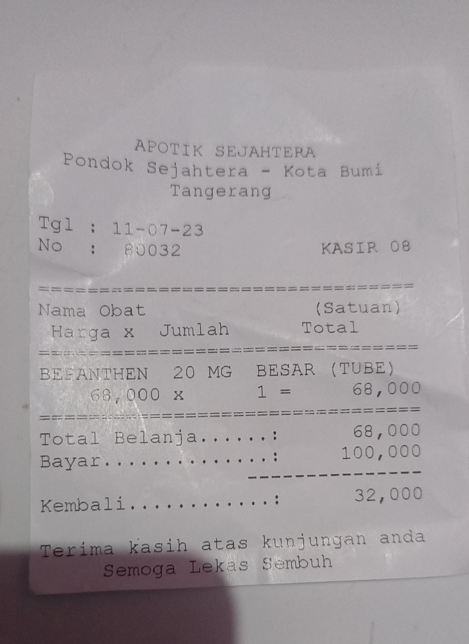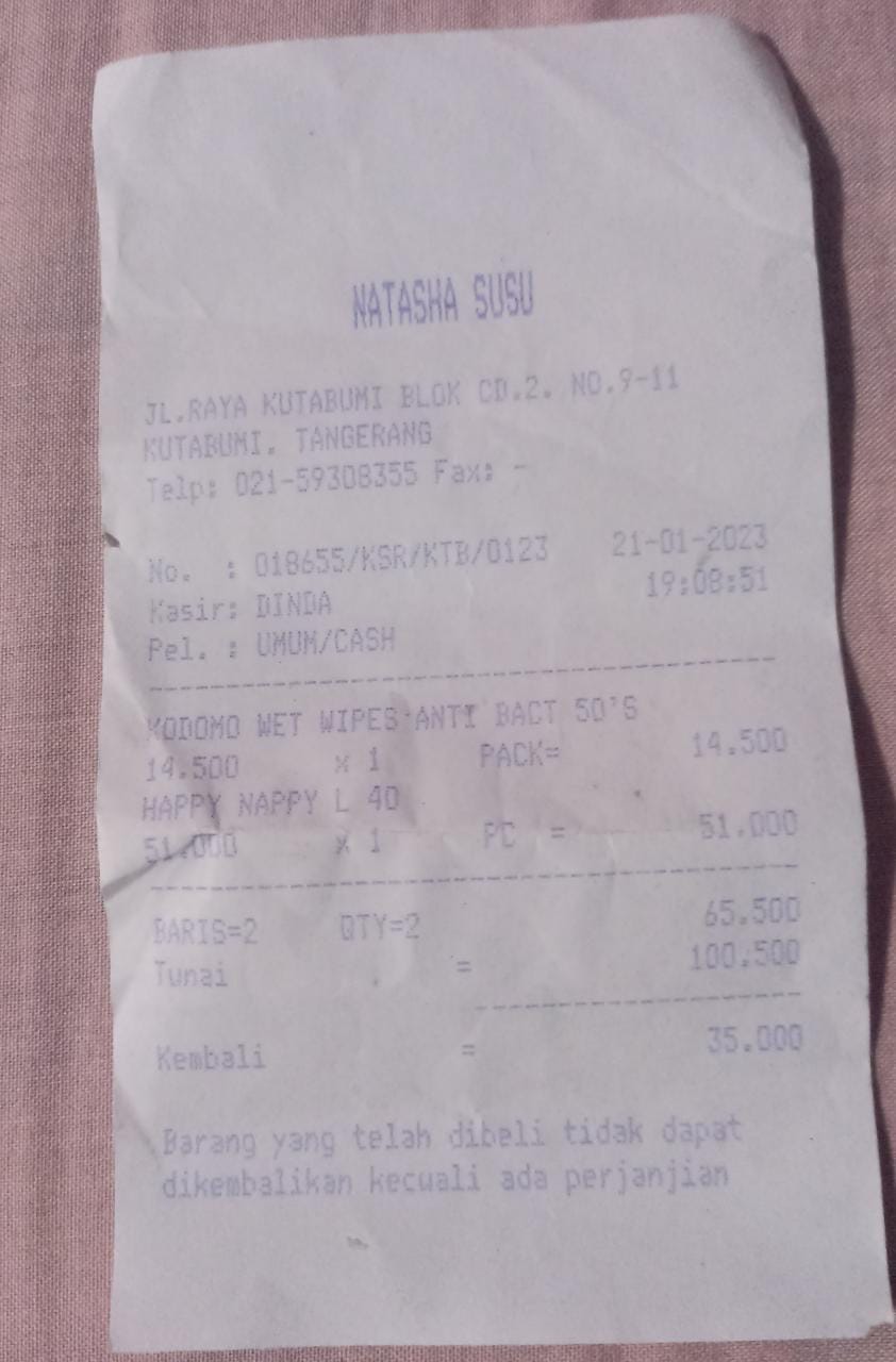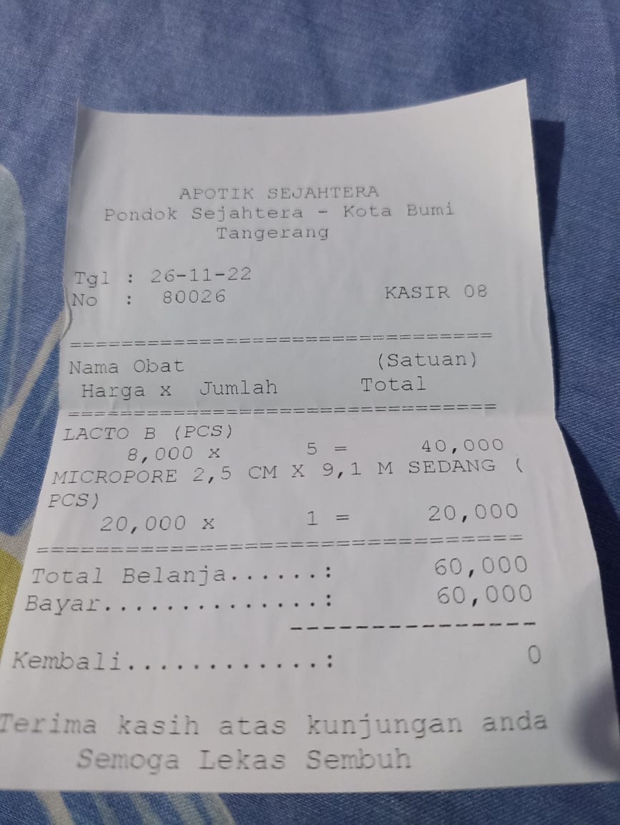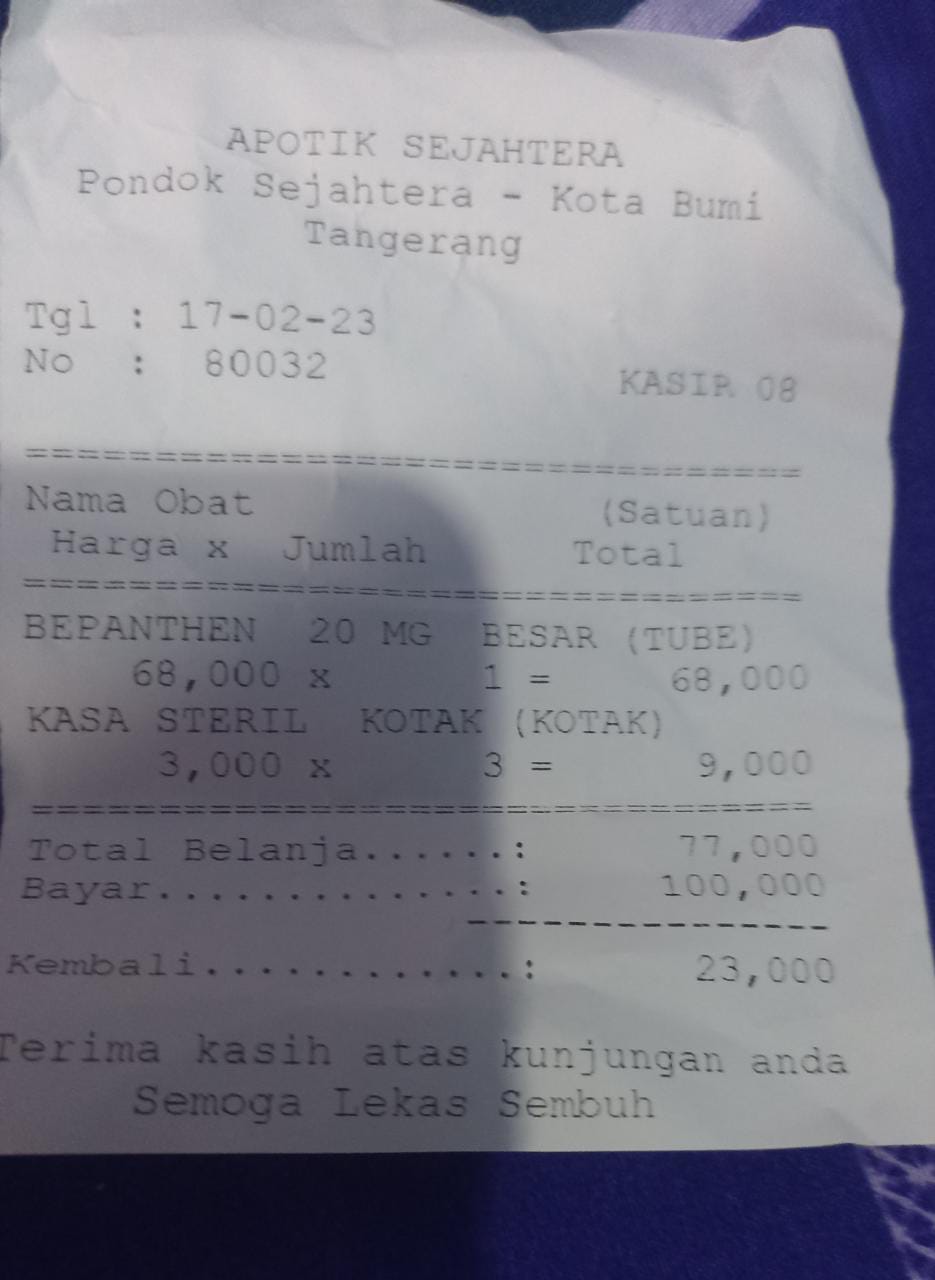 Oya, aku juga ingin mengabarkan bahwa bantuan dana dari TemanBaik sudah digunakan dengan baik untuk pembelian popok, obat, susu, tisu, biaya obat yang tidak tercover BPJS, dan biaya transportasi.