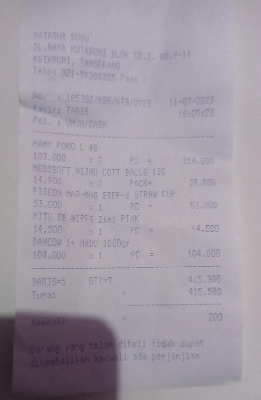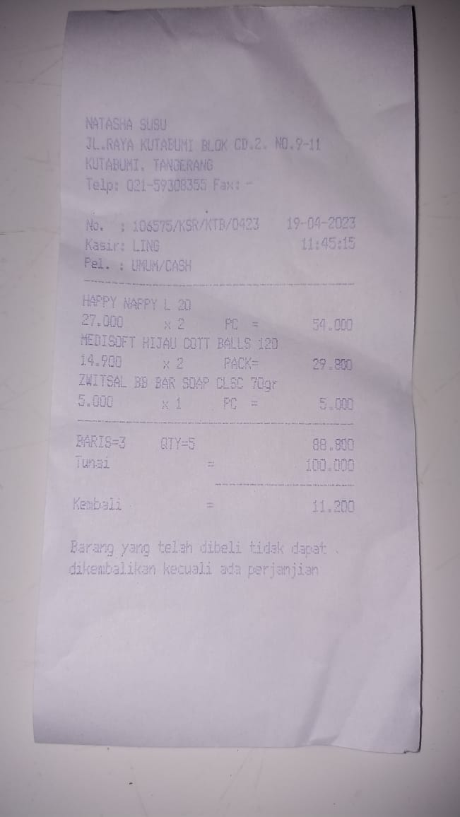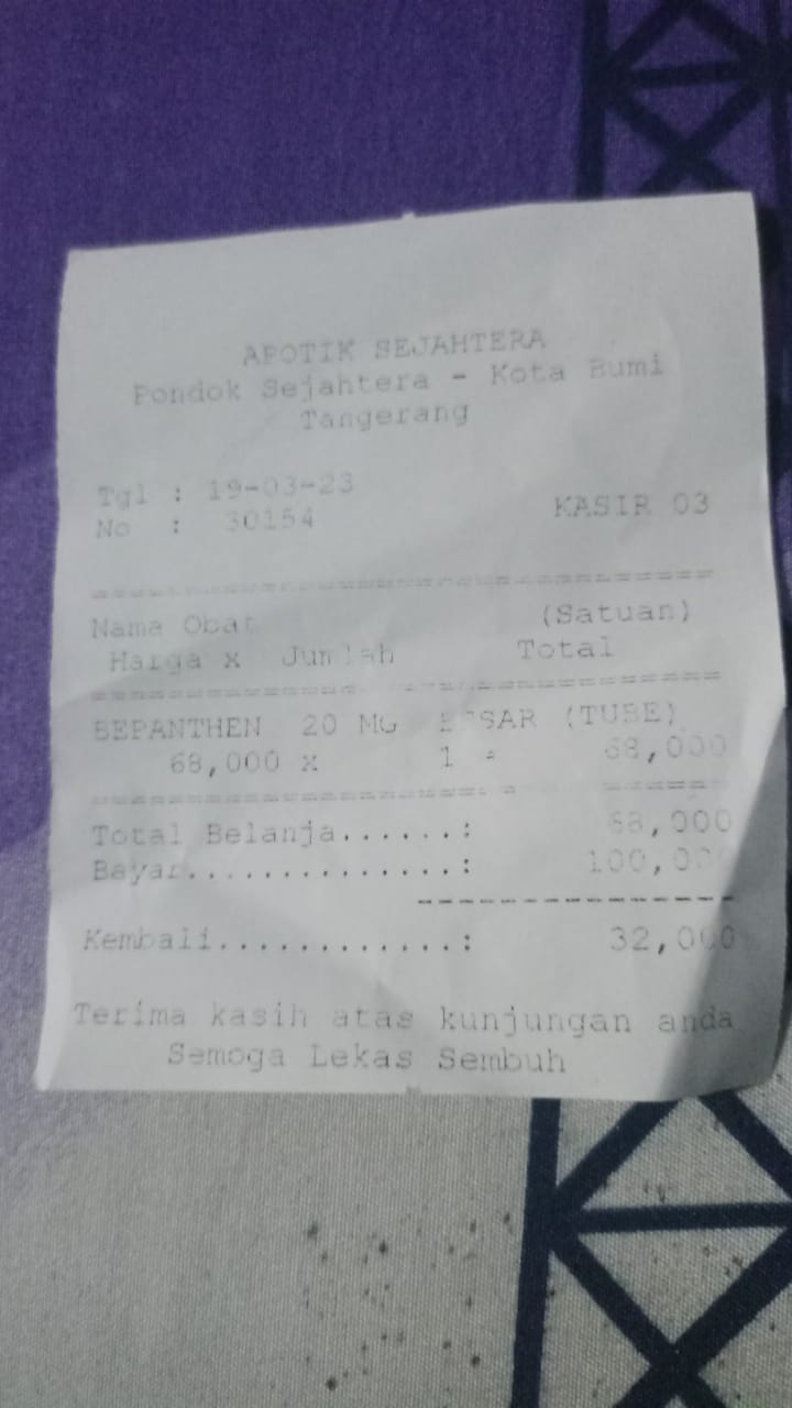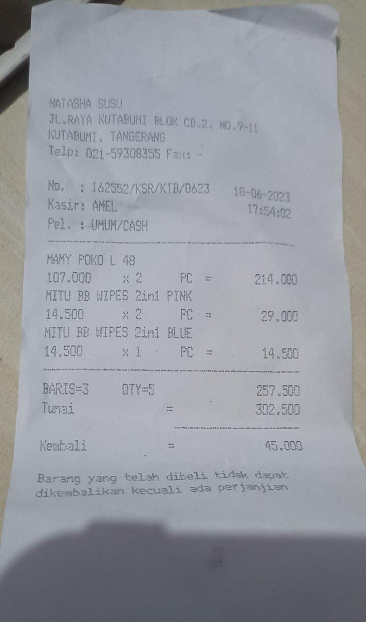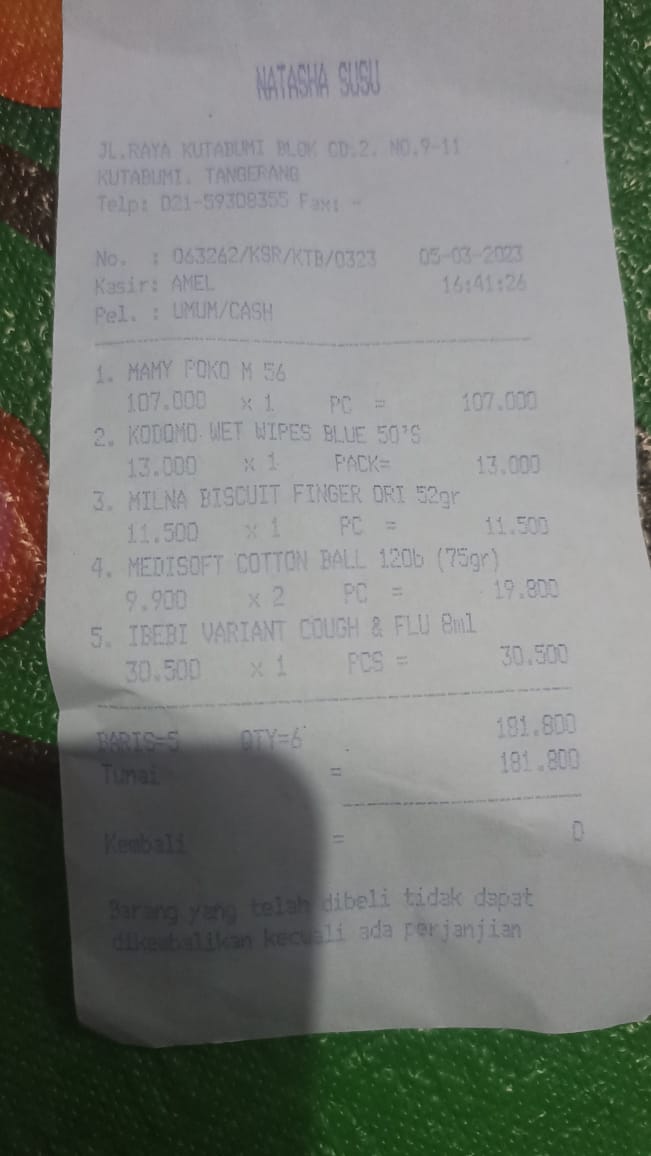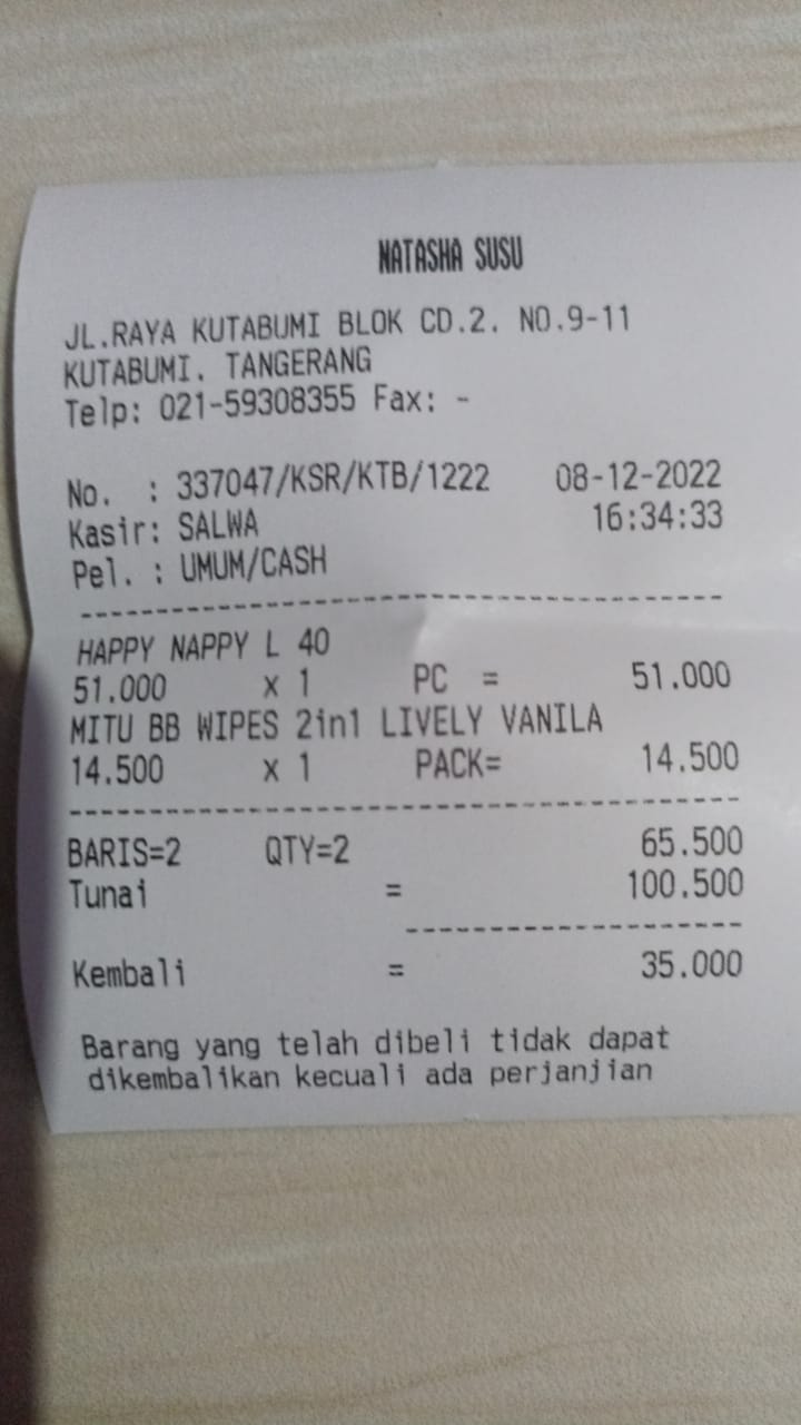 Oya, aku juga ingin mengabarkan bahwa bantuan dana dari TemanBaik sudah digunakan dengan baik untuk pembelian popok, obat, susu, tisu, biaya obat yang tidak tercover BPJS, dan biaya transportasi.