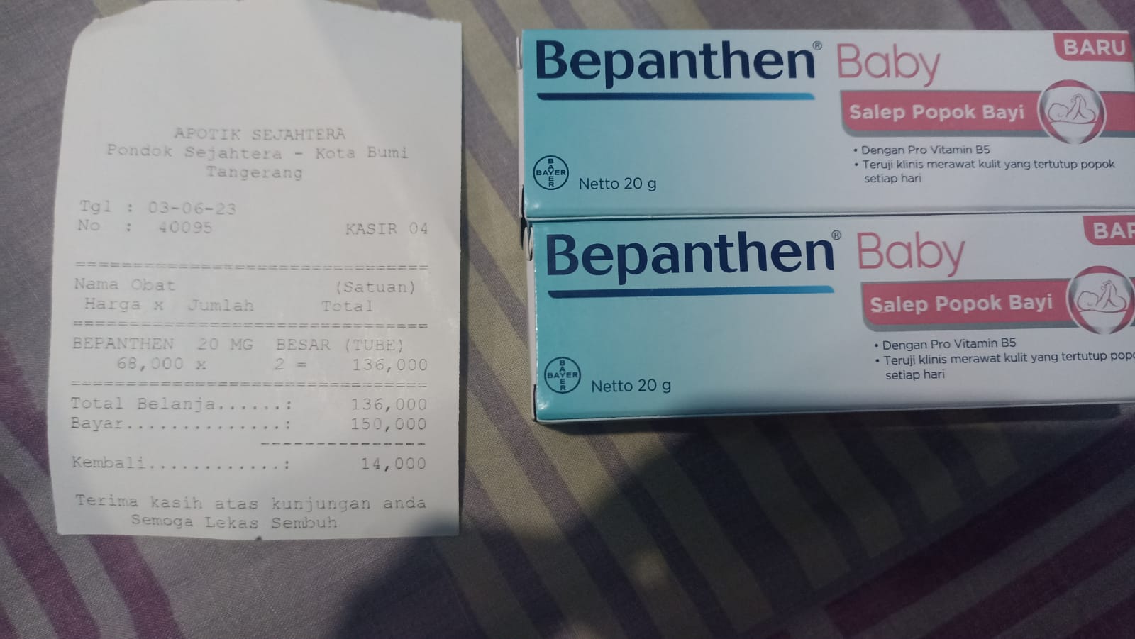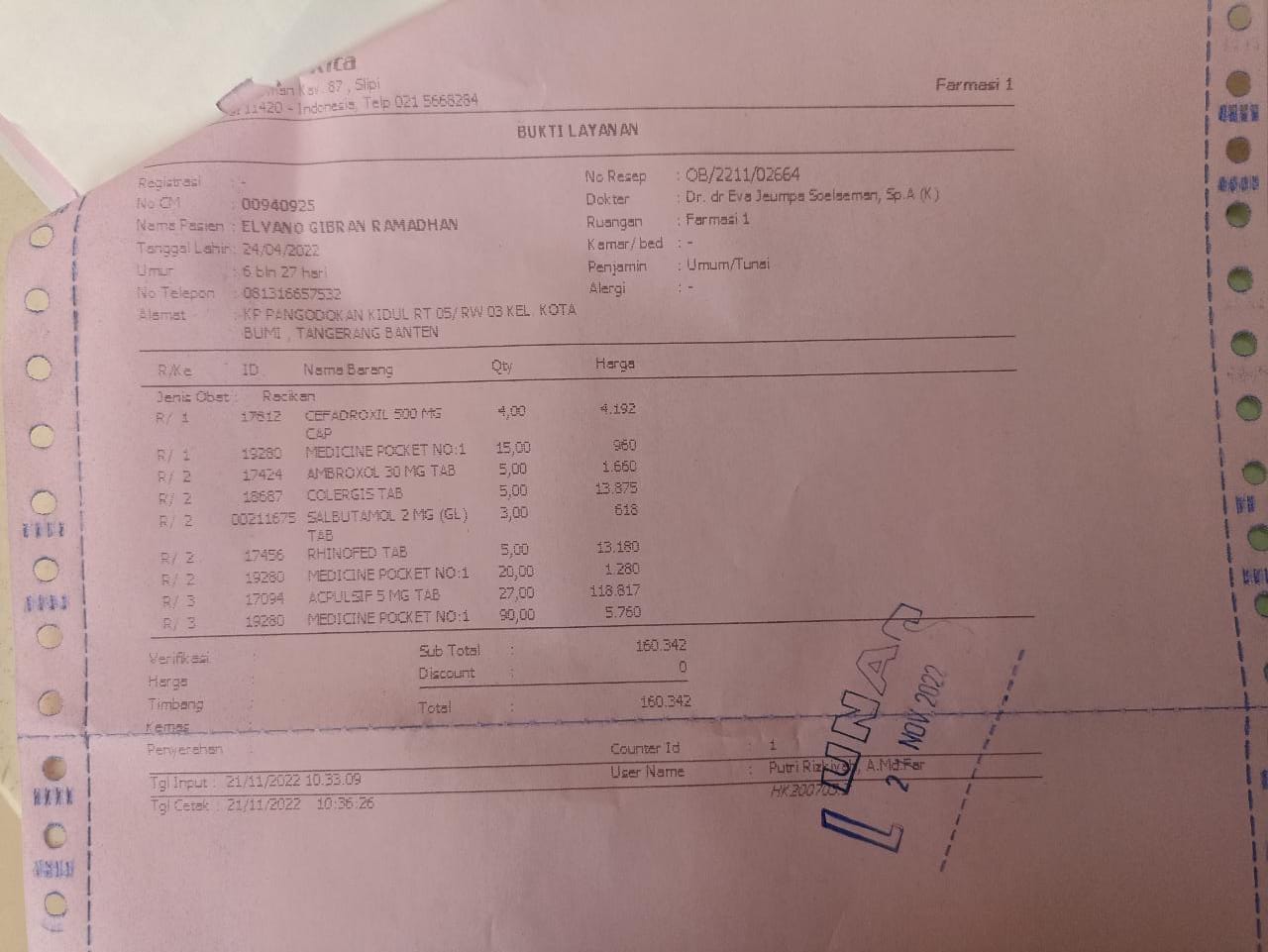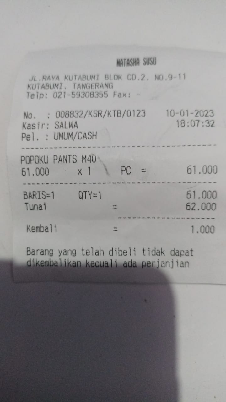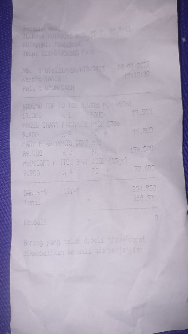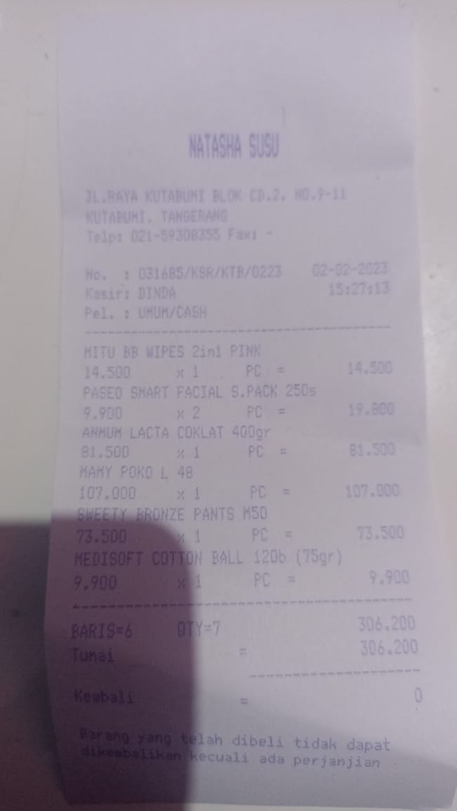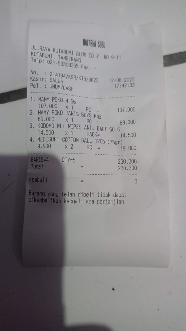 Oya, aku juga ingin mengabarkan bahwa bantuan dana dari TemanBaik sudah digunakan dengan baik untuk pembelian popok, obat, susu, tisu, biaya obat yang tidak tercover BPJS, dan biaya transportasi.