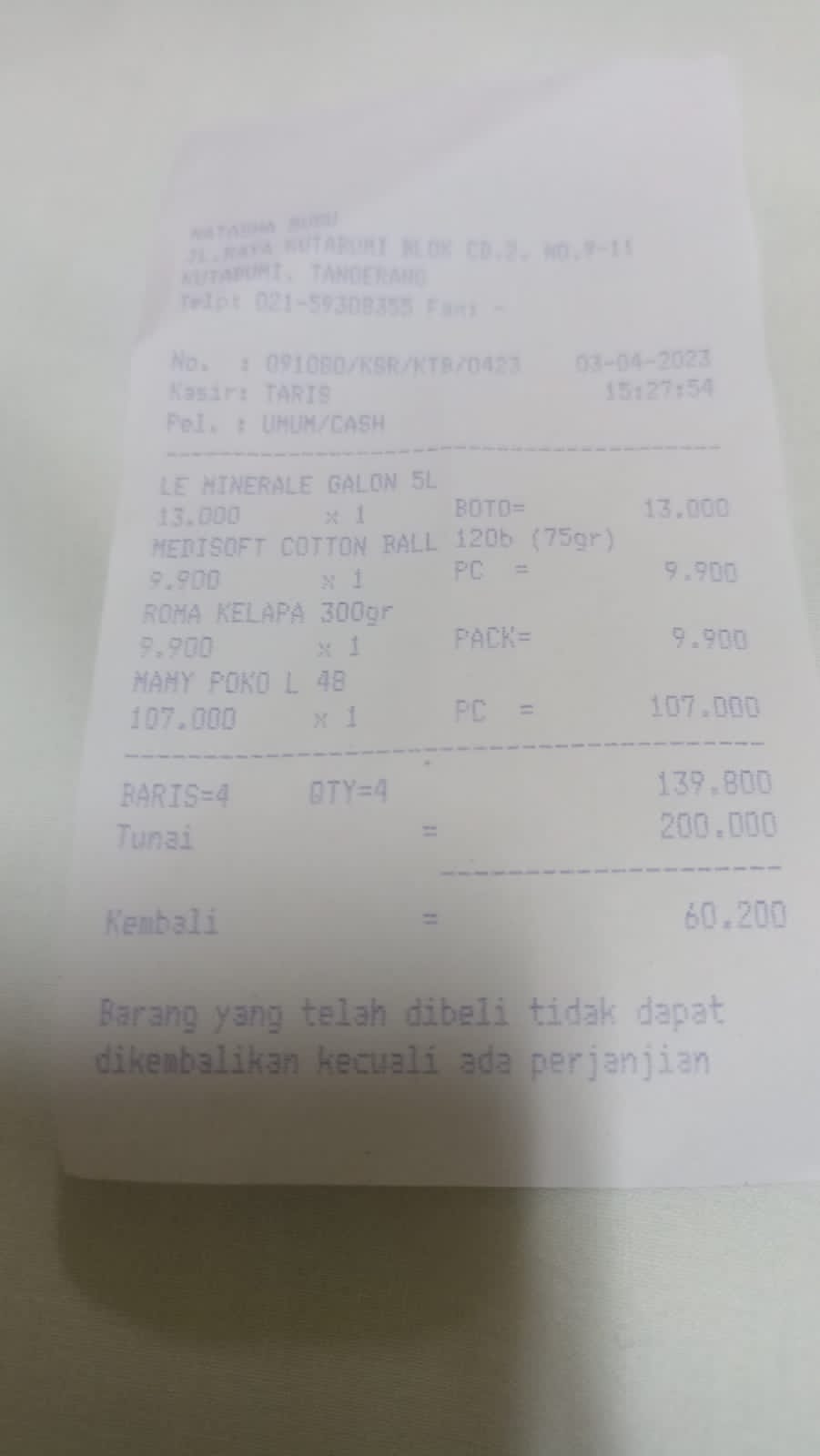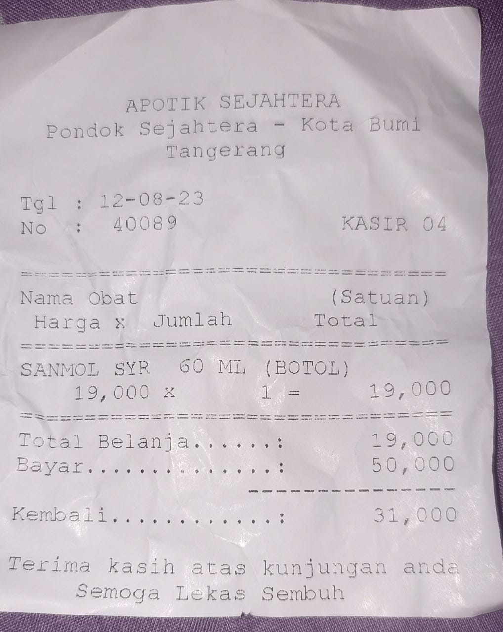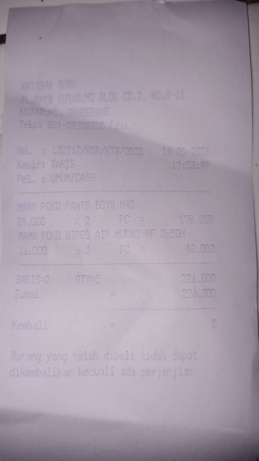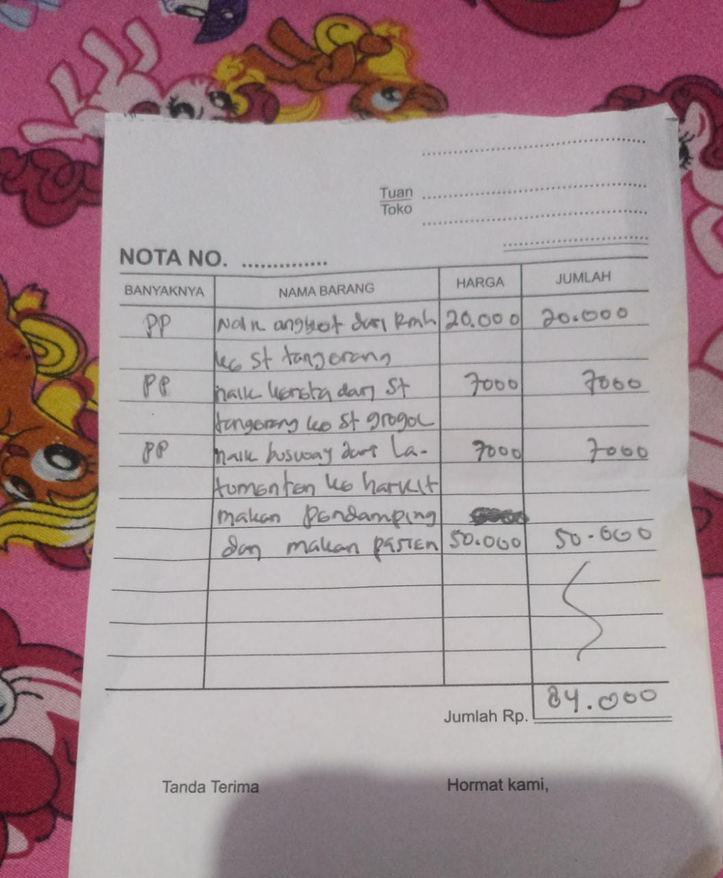 Oya, aku juga ingin mengabarkan bahwa bantuan dana dari TemanBaik sudah digunakan dengan baik untuk pembelian popok, obat, susu, tisu, biaya obat yang tidak tercover BPJS, dan biaya transportasi.