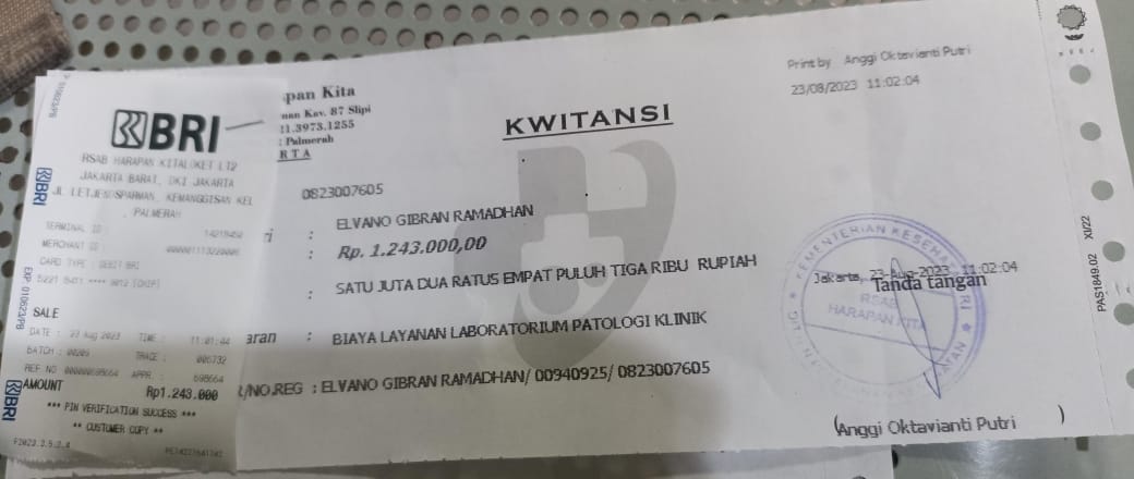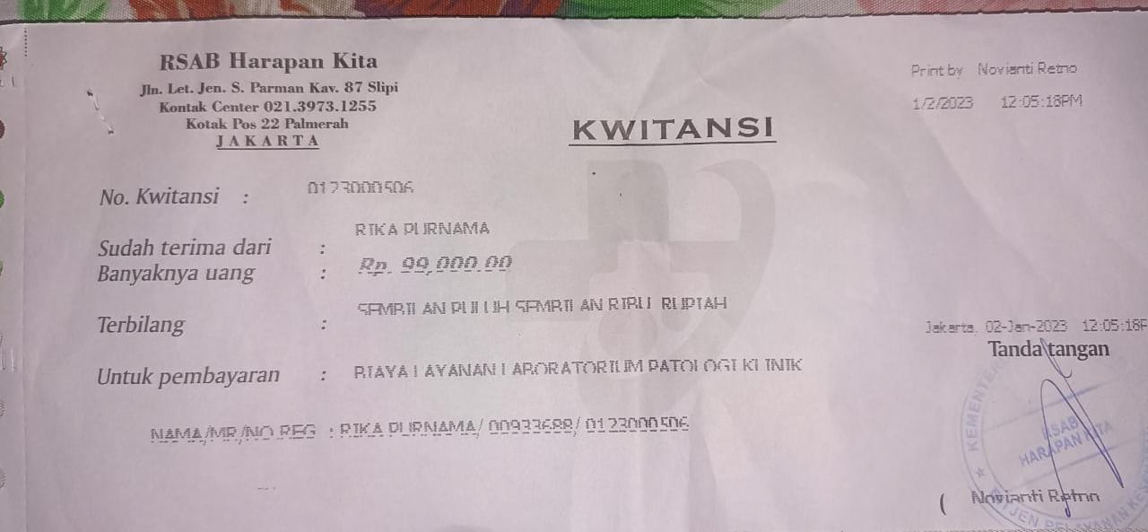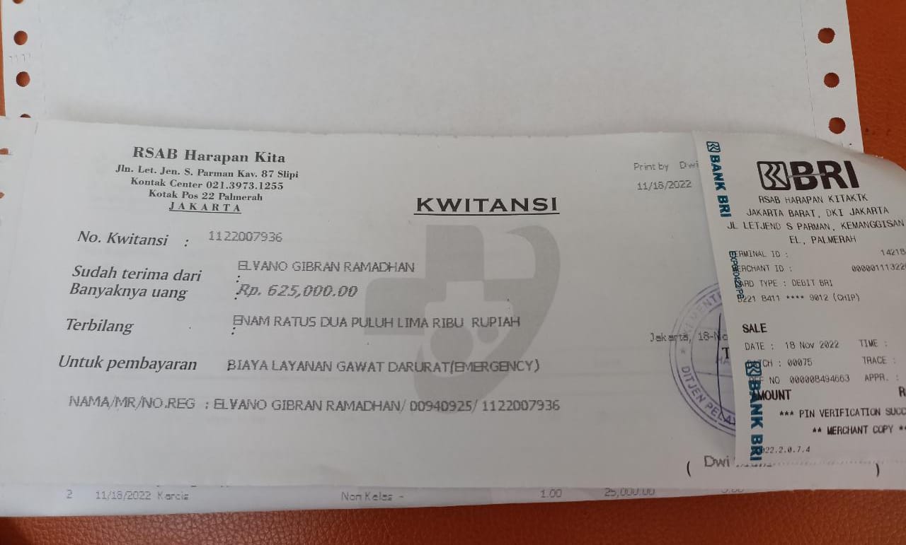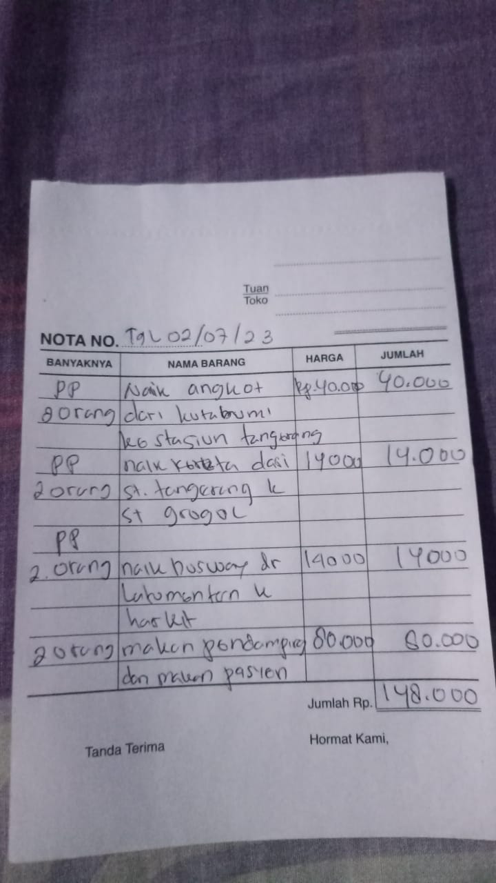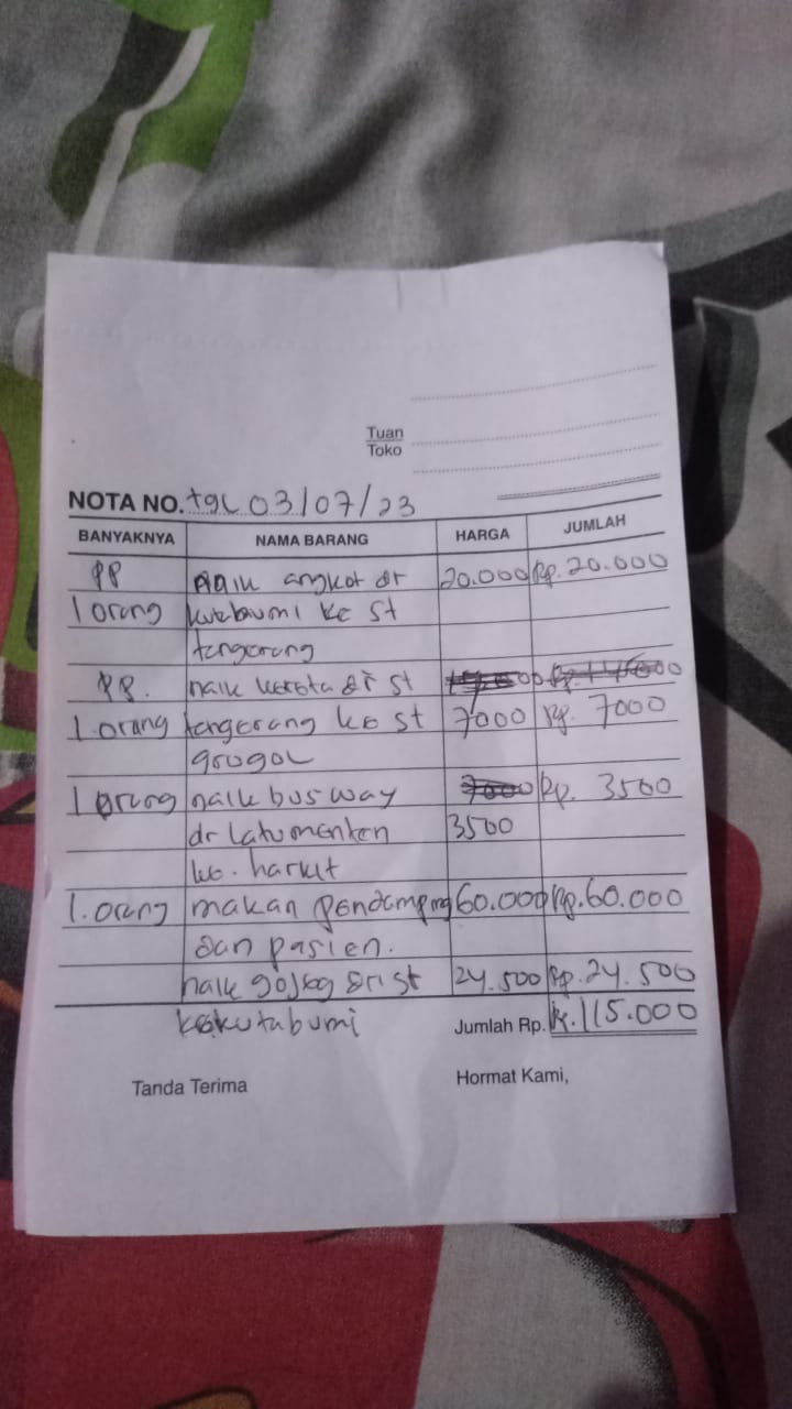Bantuan dana dari TemanBaik sudah digunakan dengan baik untuk pembelian popok, susu, kapas, tisu, obat-obatan yang tidak ditanggung BPJS, biaya makan pendamping, biaya transportasi pulang pergi naik kereta dan bus transjakarta ke RS Harapan Kita.