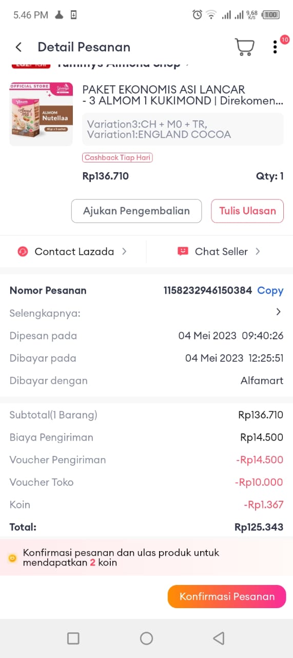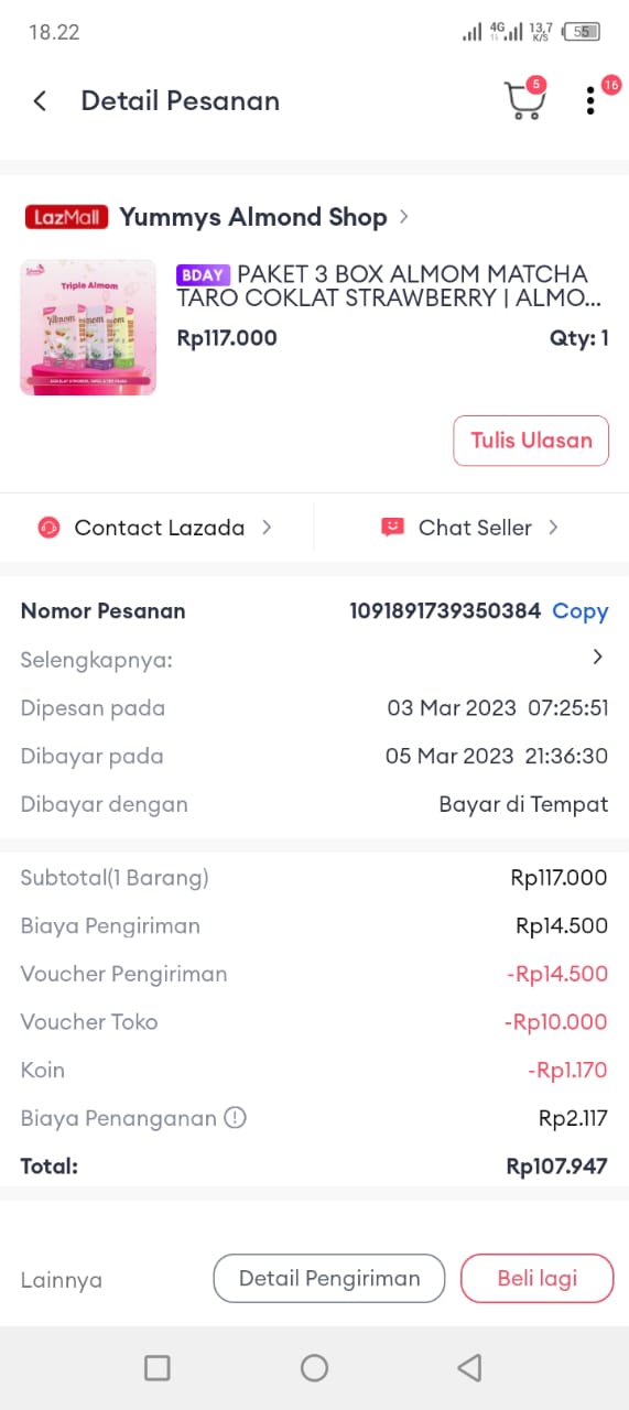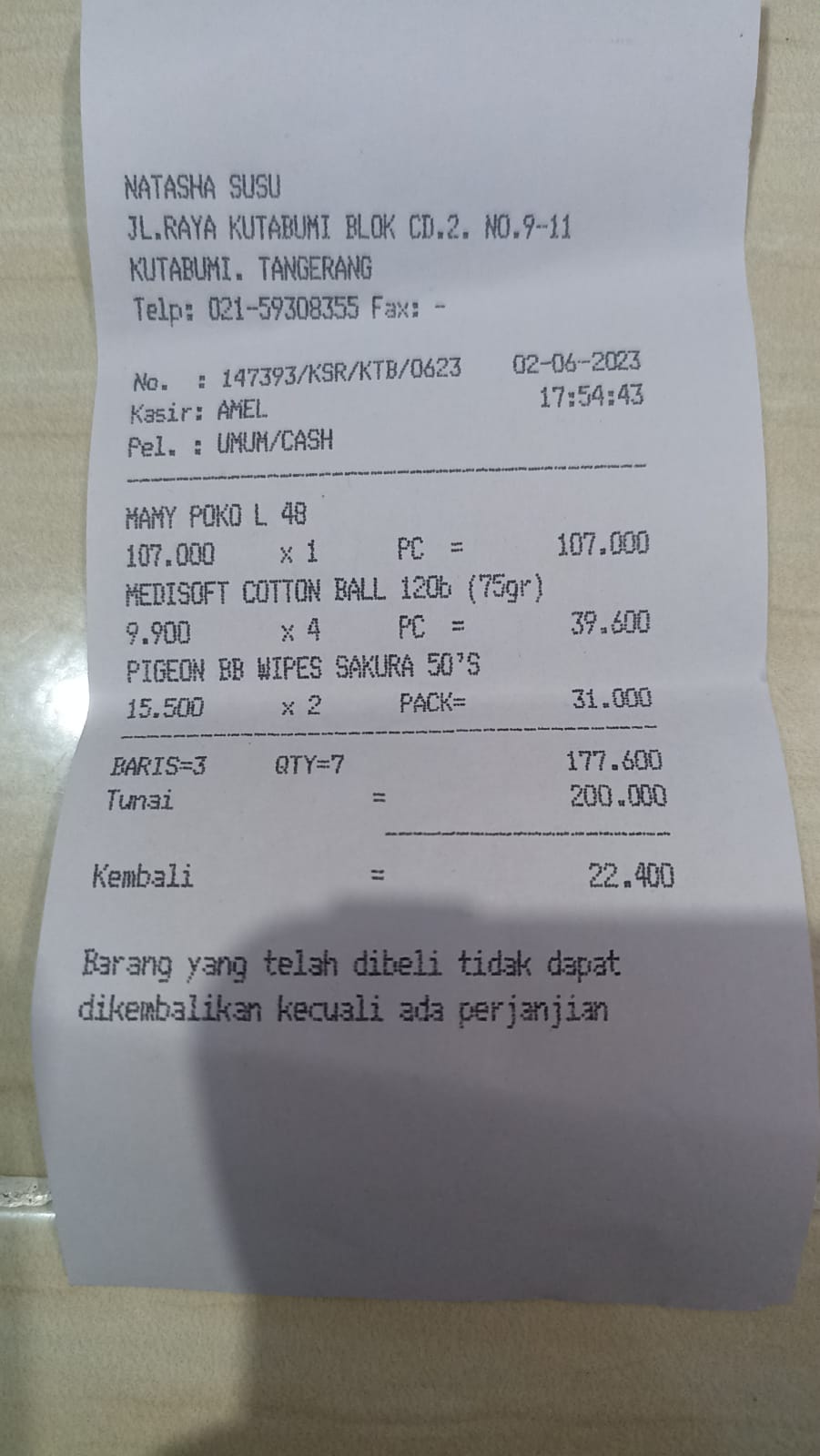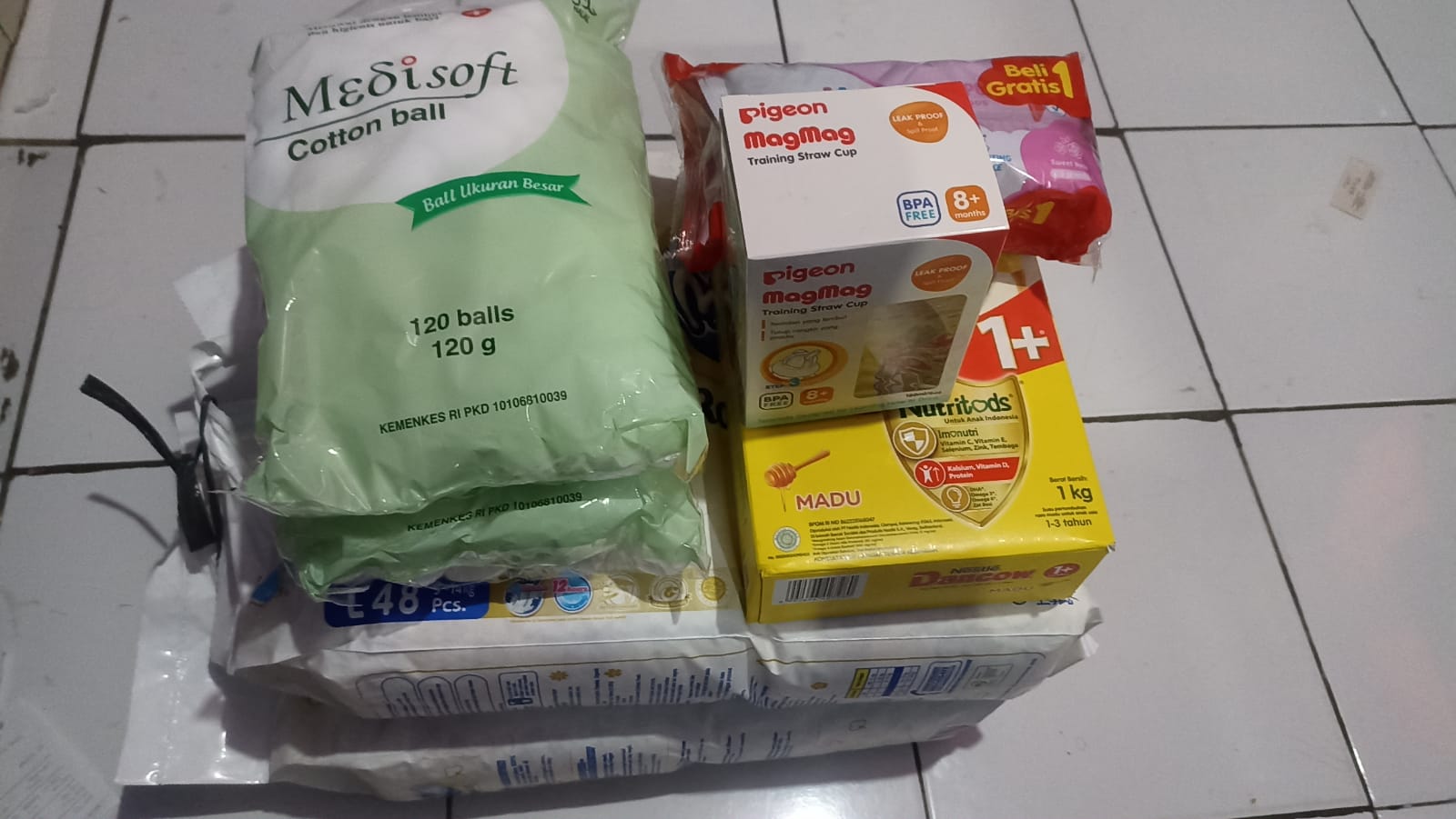 Dana digunakan untuk 1. Pampers Mamypoko perekat 107.000 x 5= Rp535.000 2. Pampers Mamypoko celana 89.000 x 6= Rp534.000 3. Bapathen 20 mg 68.000 x 8= Rp544.000 4. Susu almond untuk menyusui 6 kotak isi 15 sachet Rp200.000 5. Biaya obat-obatan yang tidak dicover BPJS Rp800.000 6. Biaya transportasi ke RS Rp300.000 7. Kapas Medisoft ball 14.500 x 15= Rp217.000 8. Tisu basah 15.000 x 4= Rp60.000 9. Tisu kering 9.000 x 4= Rp36.000 10. Tisu kering besar Rp40.0002023-05-02 16:14:11