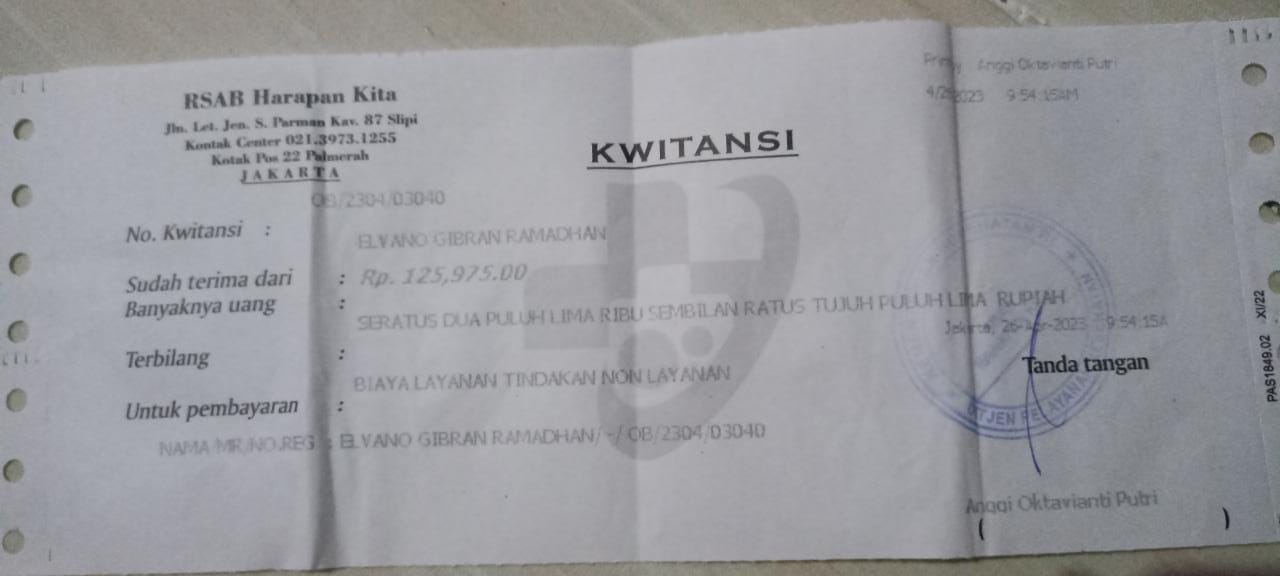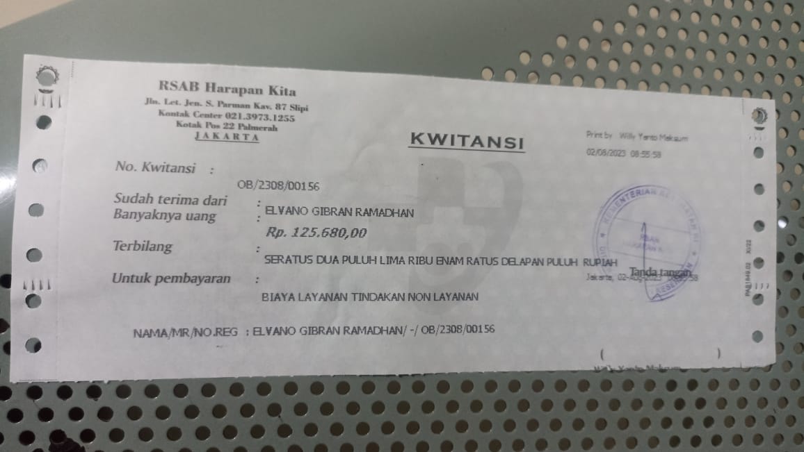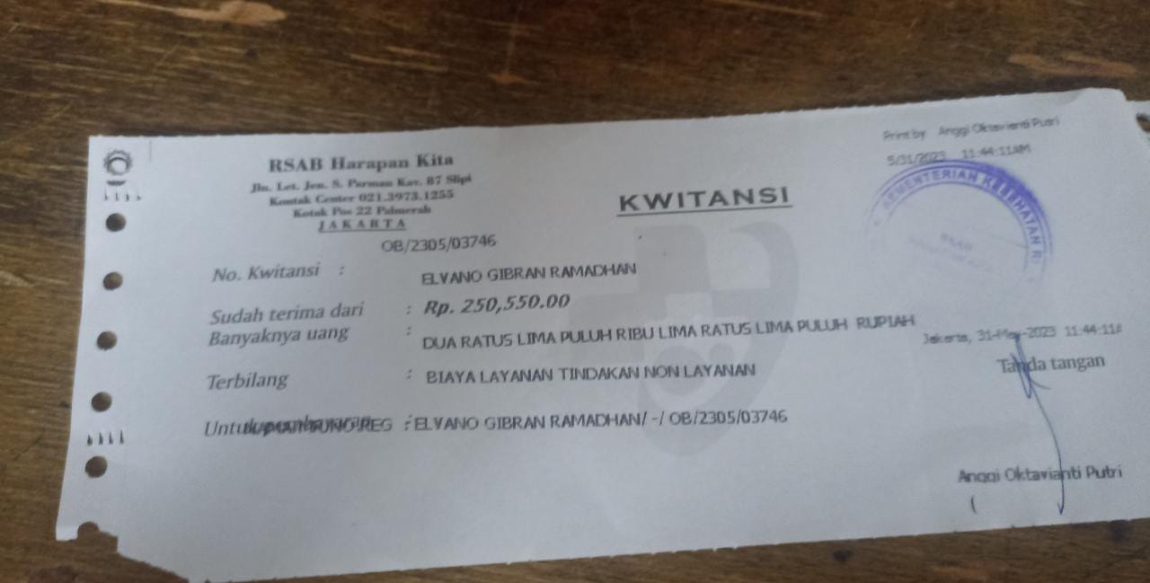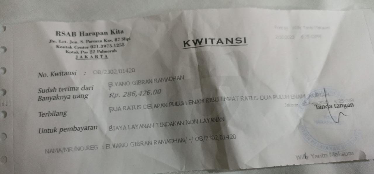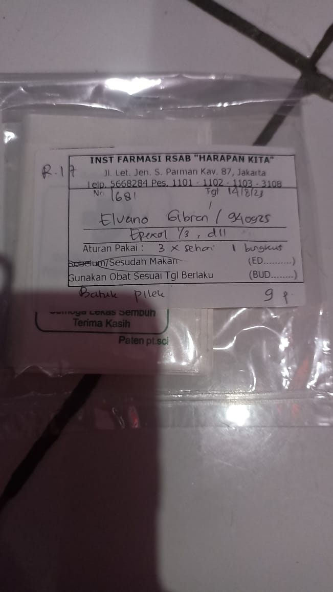Alhamdulillah Alvino menjalani pemeriksaan dan pengobatan di RSAB Harapan Kita. Dokter mengatakan kalau kondisinya harus secepatnya dibuatkan kolostomi.