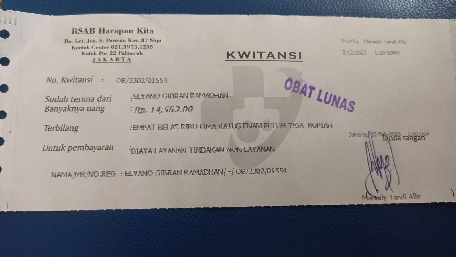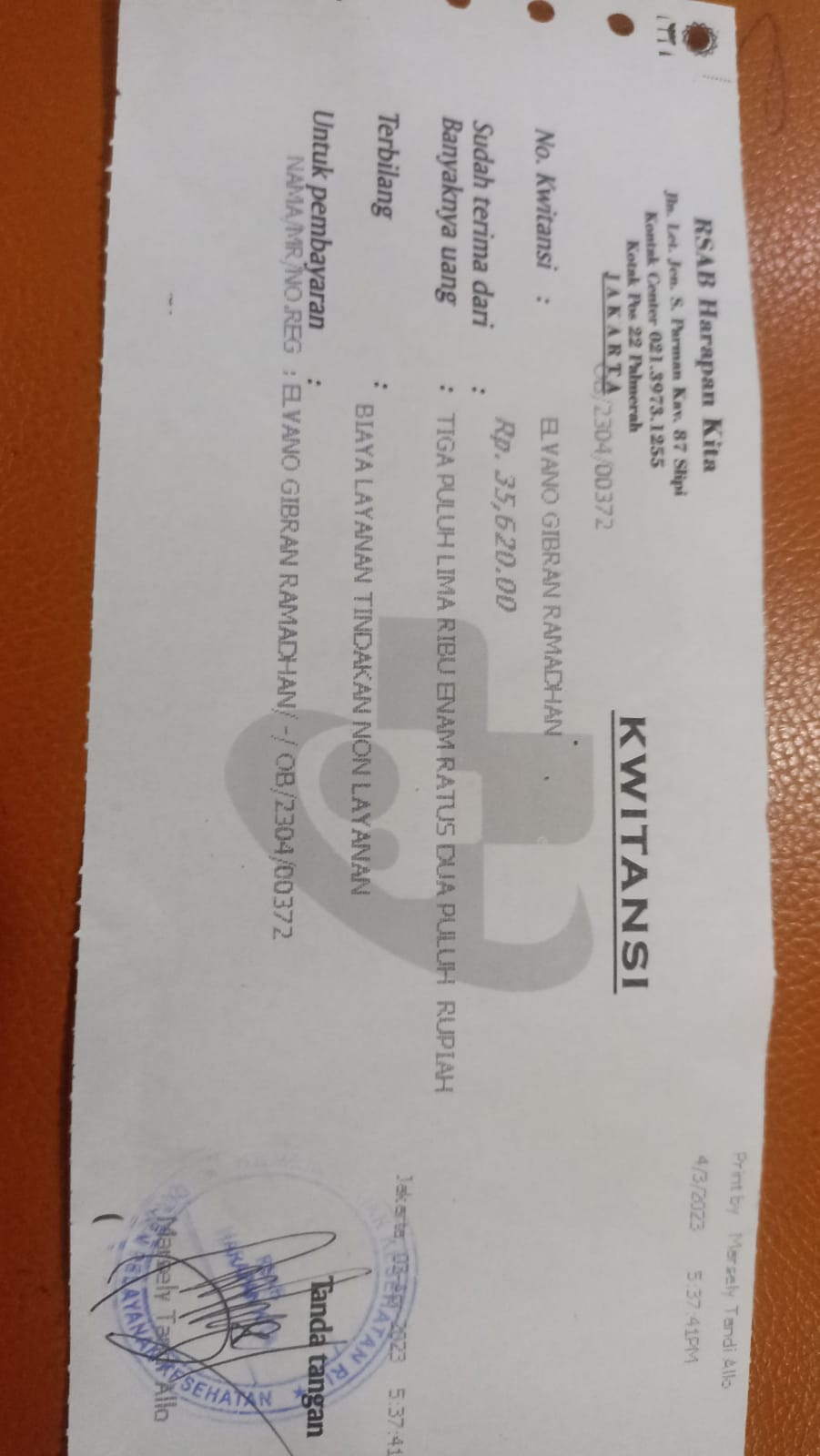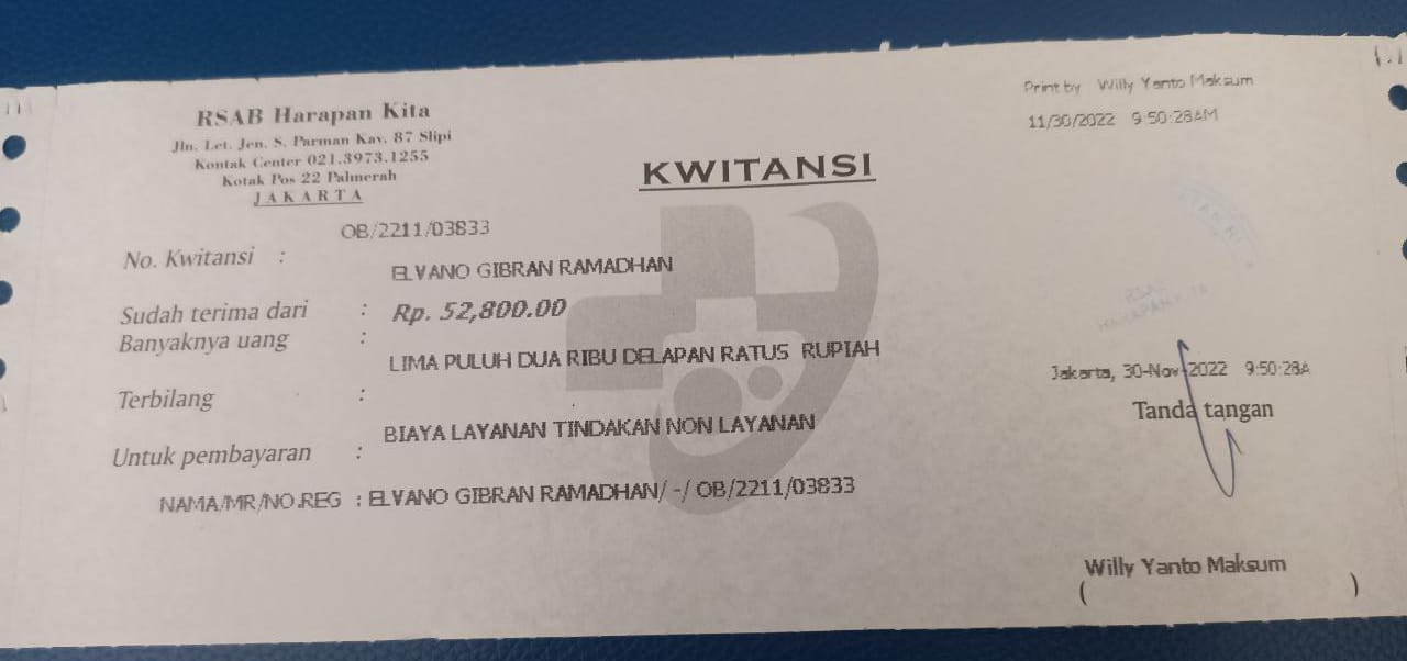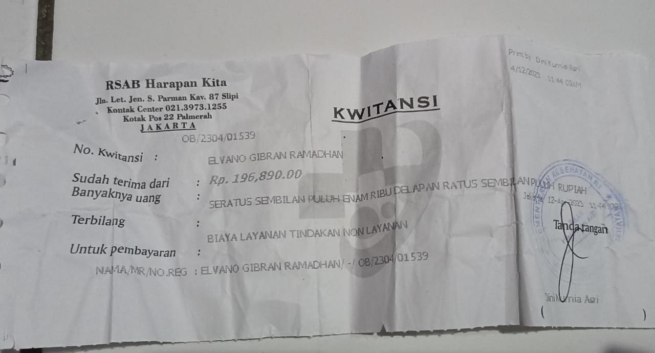 Elvano masih tetap harus kontrol rutin di RSAB Harapan Kita untuk memastikan lubang anusnya sempurna dan harus dibusi ke rumah sakit seminggu sekali.