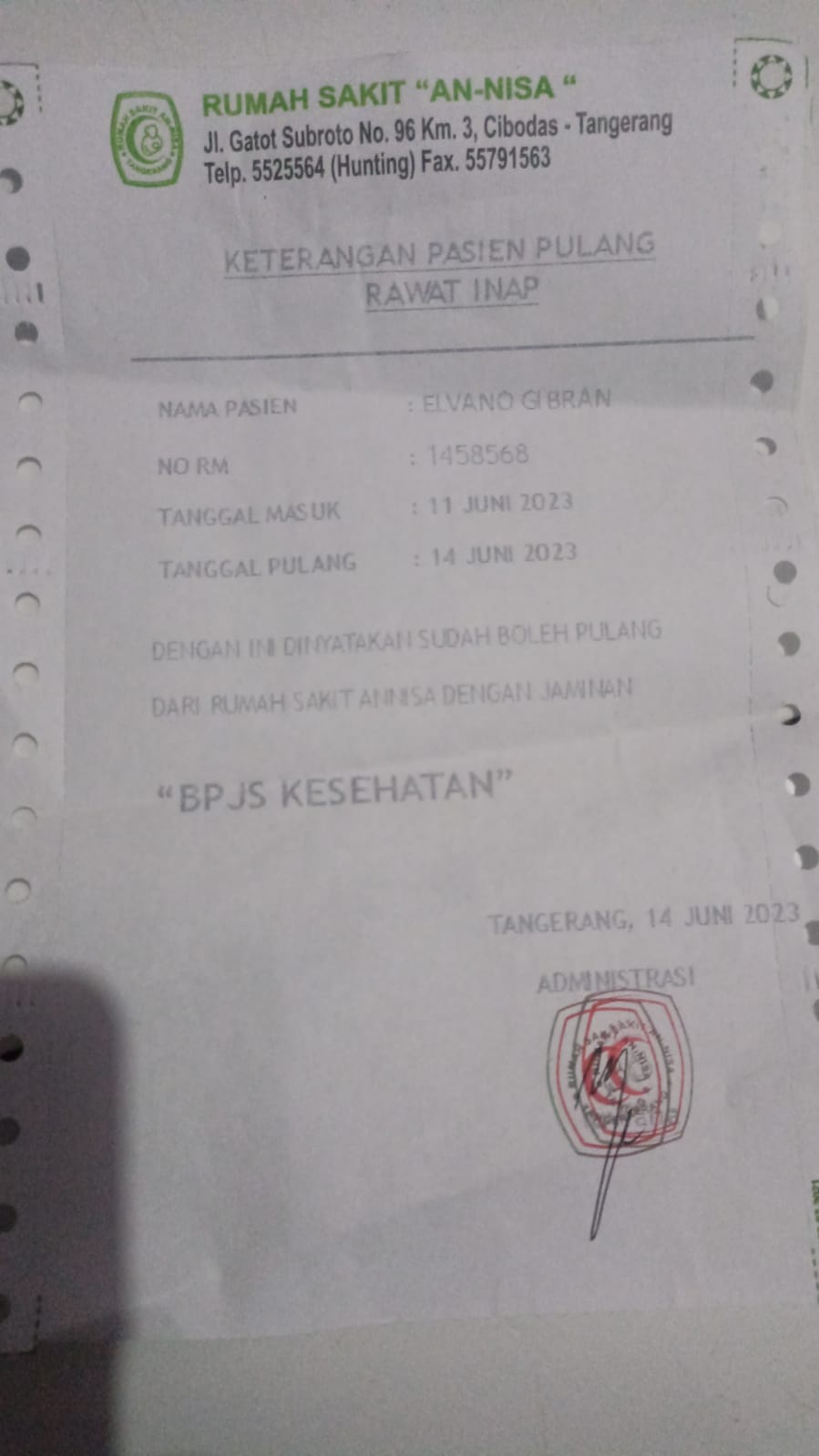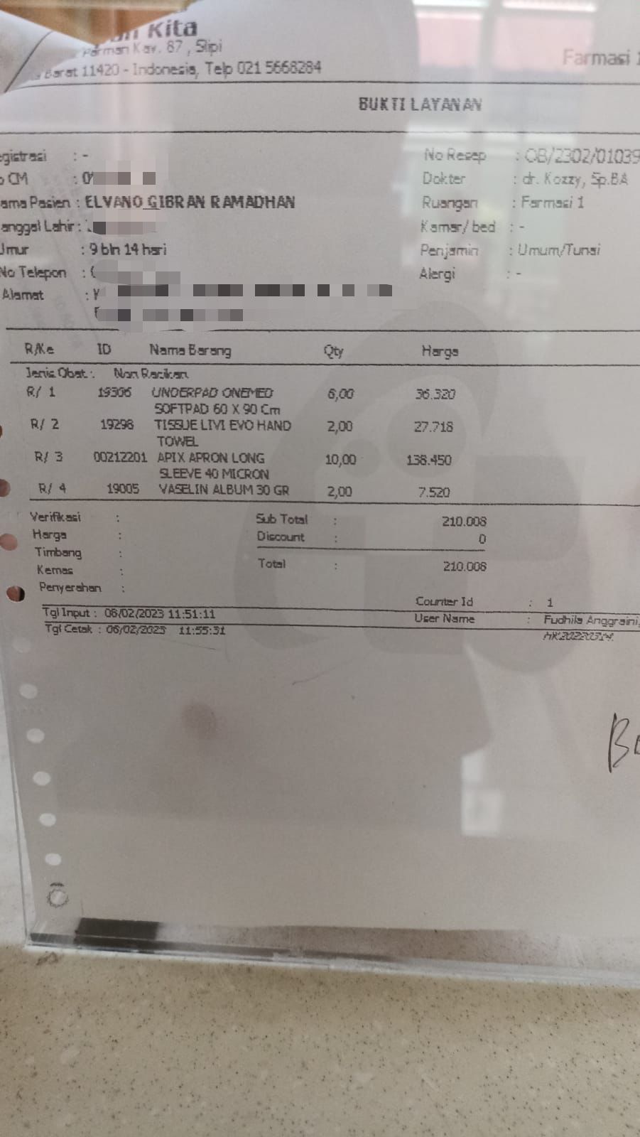 Elvano Kontrol Ke Poli Bedah Anak Untuk Melakukan Busi No. 9-10