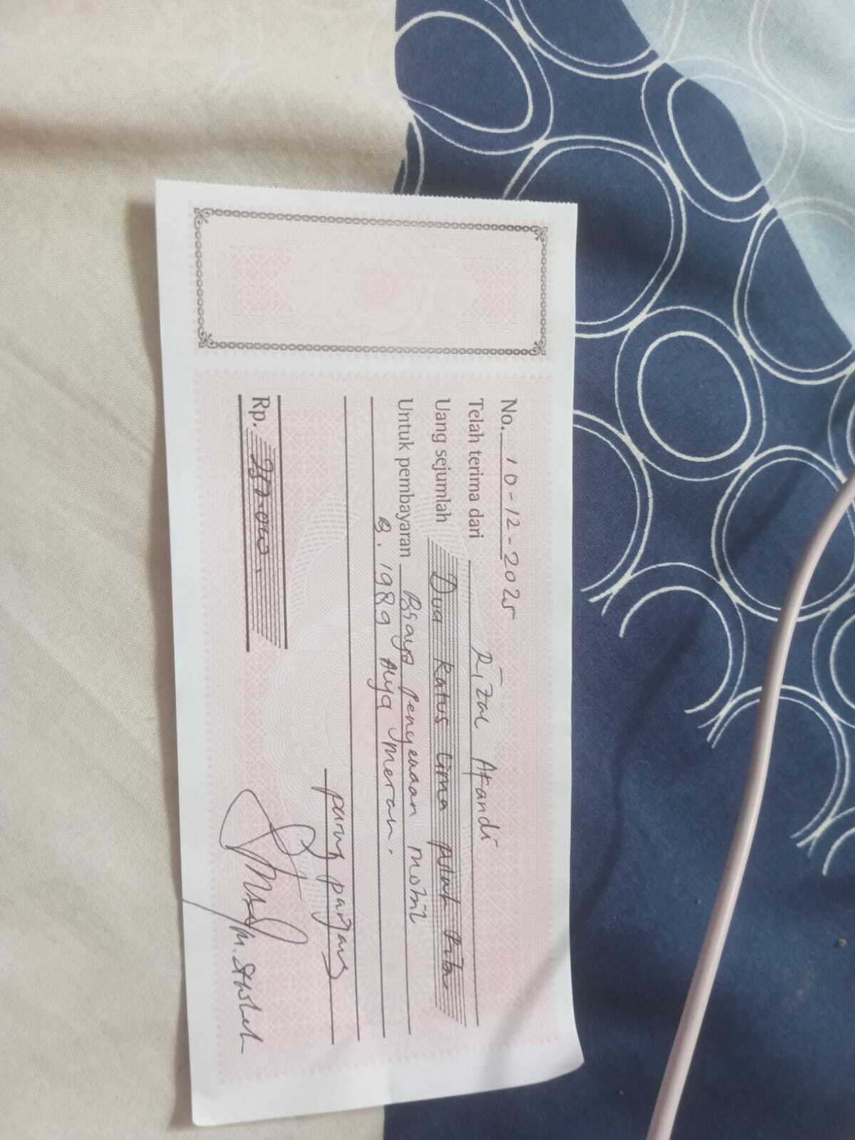 Dana digunakan untuk 1. Susu lactogen 6-12 375 gram Rp65.000 × 8 dus = Rp520.000 2. Susu lactogen prematur 2 400gram Rp160.000 × 2 kaleng =Rp320.000 3. Pampers baby happy Rp56.000 × 4 = Rp224.000 4. Transpotasi sewa mobil terapi ke RSUD kabupaten Tangerang Rp200.000 × 6kali = Rp1.200.0002025-08-28 09:29:41