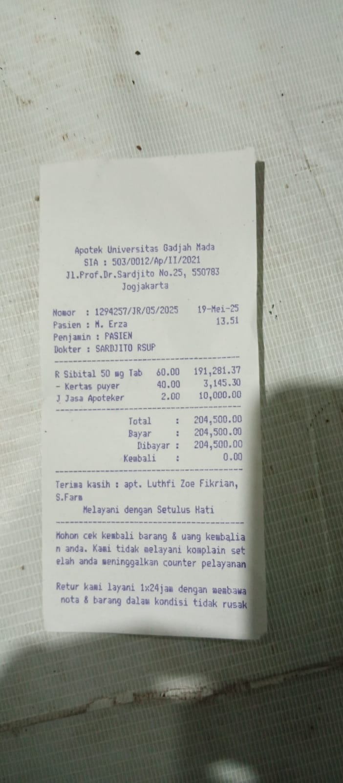 1.kontrol ke RSUP JOGJAKARTA pembelian BBM dari parakan kejogjakarta Rp.200.000 2.uang konsumsi Rp.200.000 3.pembelian obat calcitriol Rp.215.000 4.Pembelian obat leviracetam 35 tablet buat 2minggu Rp.175.000 5.Pembelian NGT Rp.50.0002024-08-27 10:57:05