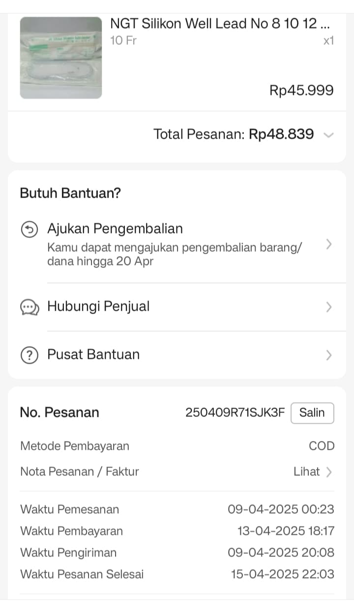 Dana digunakan untuk 1.NGT Ukuran 10fr Rp50.000 2.susu bebelac 1kg/1000gram 4pcs Rp170.000 x 4pcs = Rp680.000 3.mamypoko ukuran xl 4pcs Rp.240.0002024-07-04 08:47:39