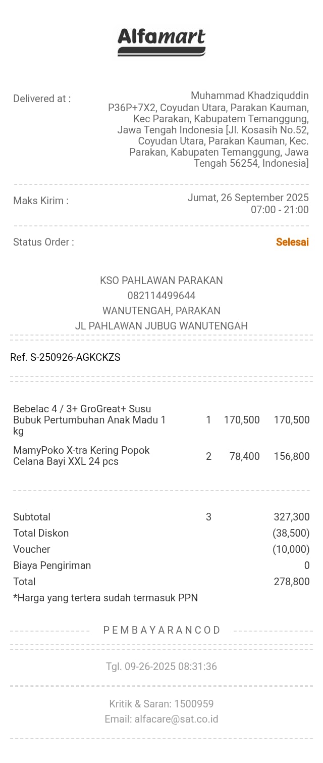 Dana digunakan untuk Pembelian susu bebelac 1kg Rp162.000 x 4dus = Rp648.0002025-03-26 09:45:57
