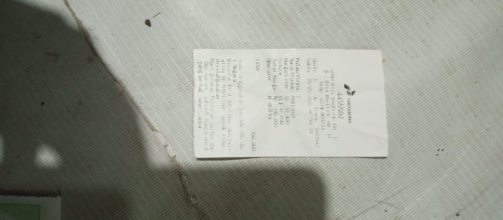 1.pembelian BBM dari parakan ke jogjakarta Rp. 250.000 2.uang makan untuk kontrol Rp.200.0002024-07-10 09:26:17