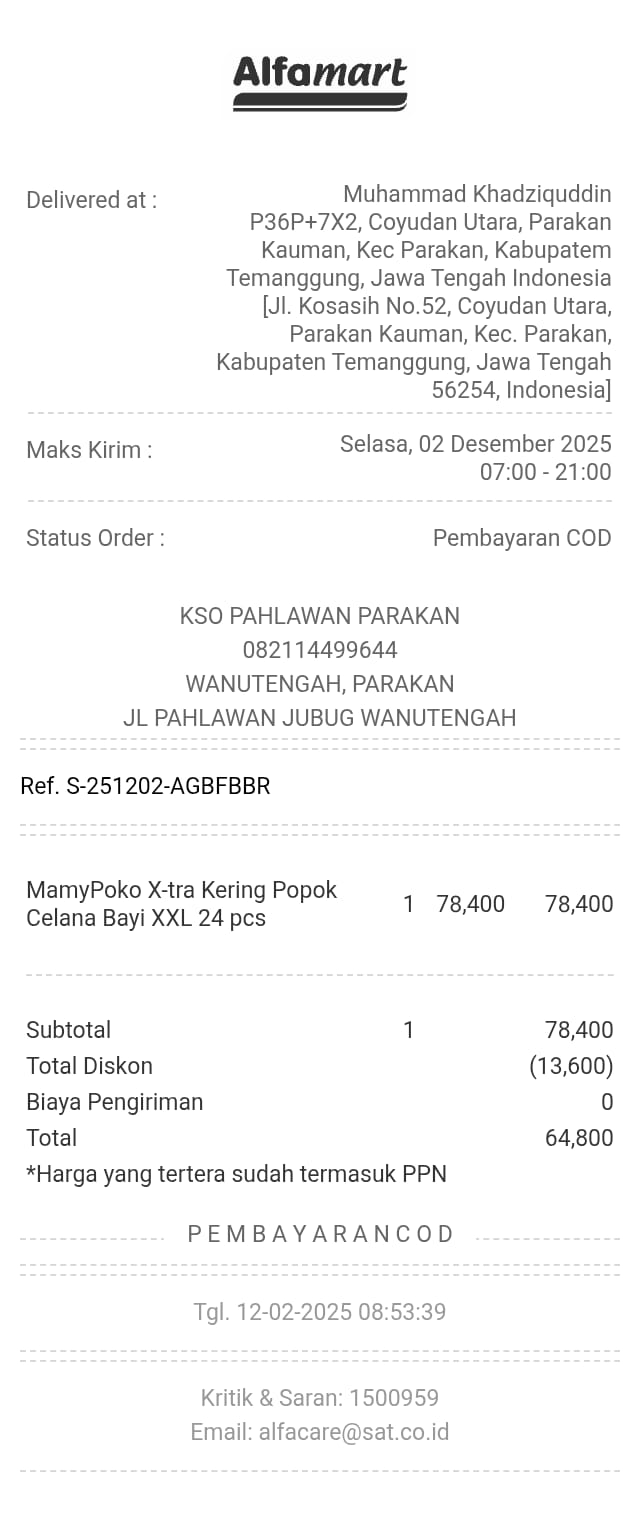 Dana digunakan untuk pempers mamypoko ukuran XL Rp60.000 x 4 = Rp240.0002024-08-14 11:15:34