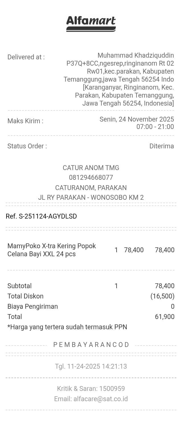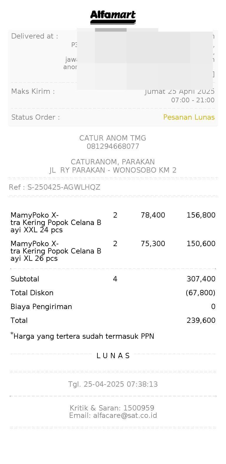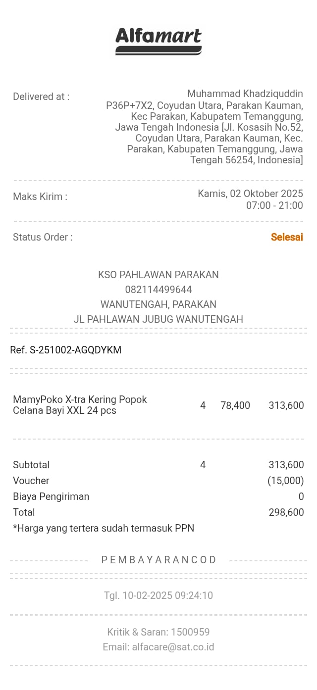 Dana digunakan untuk Pampers mamypoko Rp74.000x4= Rp297.0002025-10-24 16:39:47
