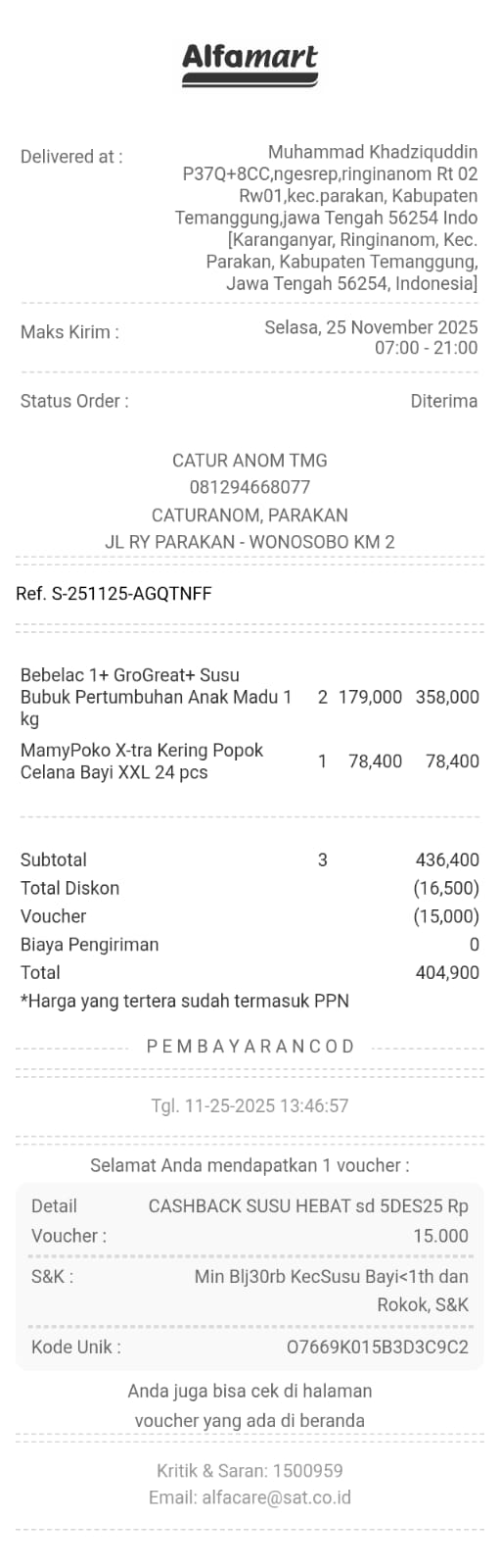 1.pembelian susu bebelac 4+ madu q1000gram Rp.170.000×3=510.0002024-08-09 16:57:53