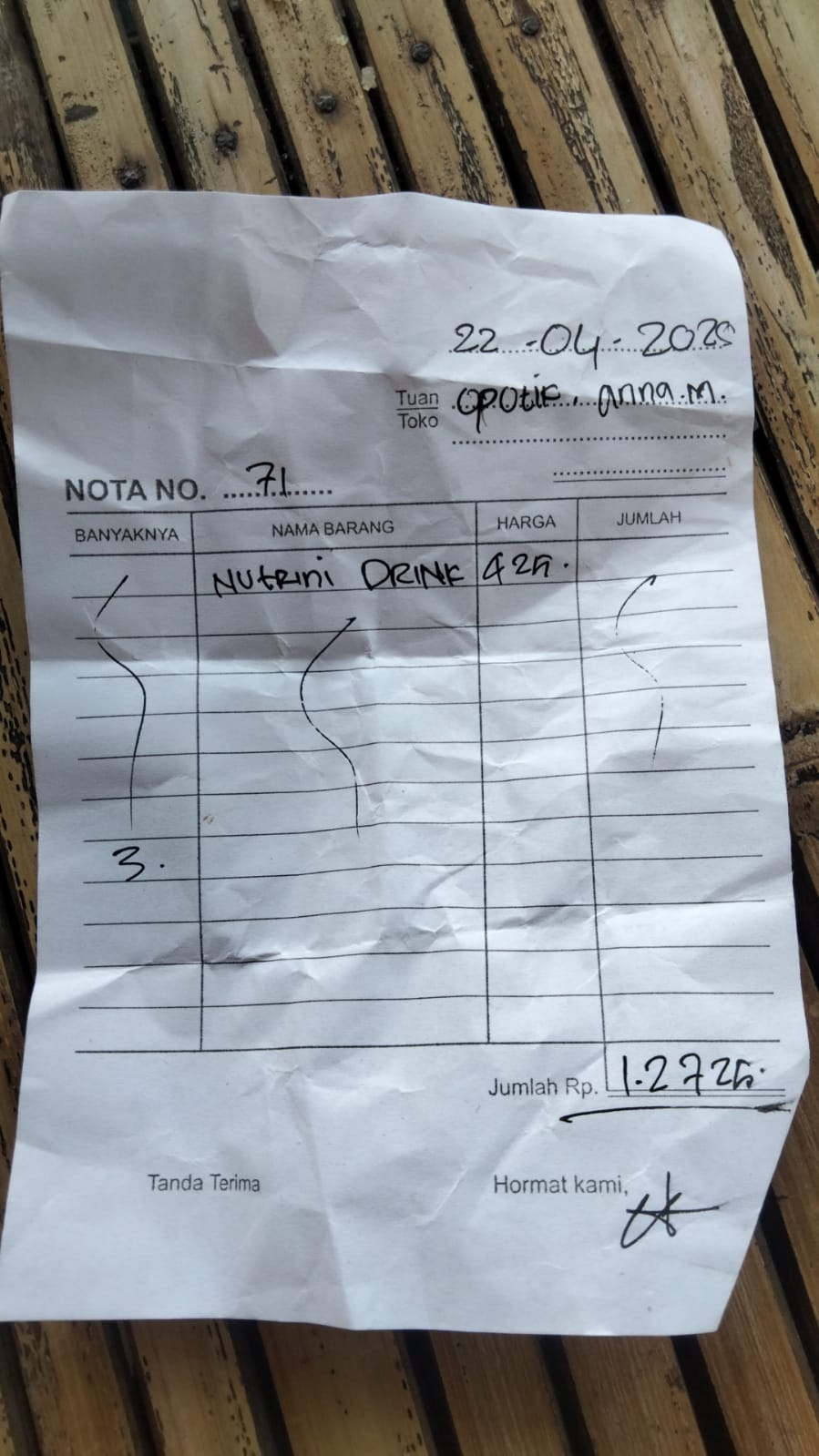 Dana digunakan untuk 1. Susu bebelac 800gr Rp145.000 x 3 pcs = Rp435.000 2. Popok sweety ukuran XXL isi 32 Rp83.000 x 3 pcs = Rp249.000 3. Tisu kering dan tisu basah Rp66.000 4. Minyak kayu putih RP48.900 5. Transportasi bensin dari RS Soetomo Surabaya ke Bangkalan Rp100.000 6. Konsumsi di RS Rp300.000.2025-04-22 09:51:54