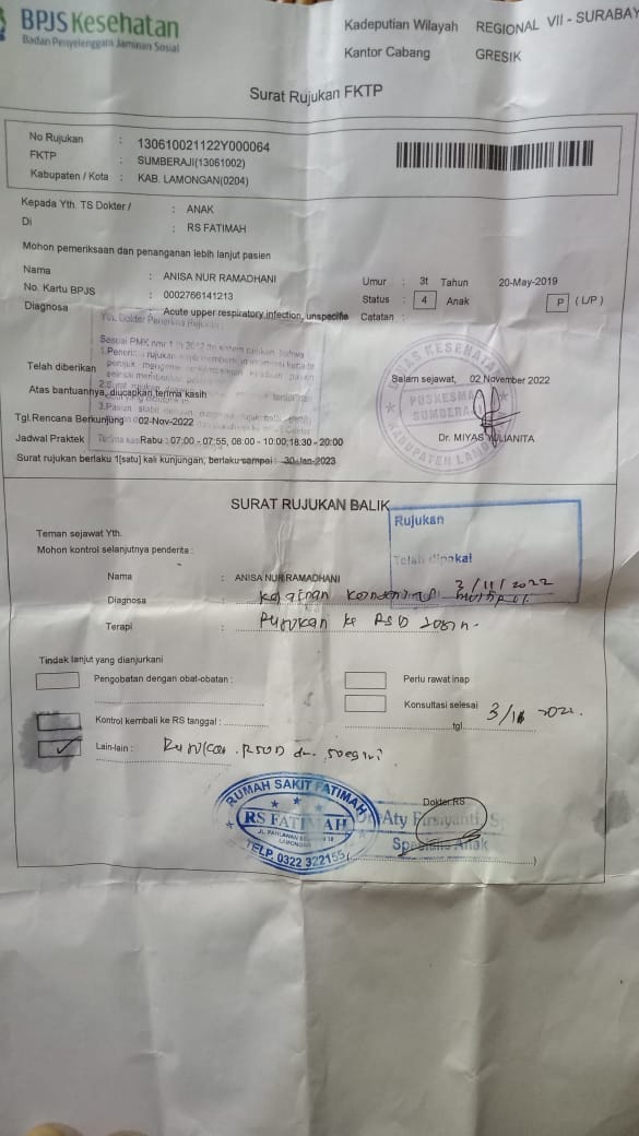 Sekarang Anisa lagi kontrol lagi ke poli syaraf di RSUD Dr. Soetomo Surabaya. Mohon doakan Anisa ya TemanBaik supaya kondisinya membaik.